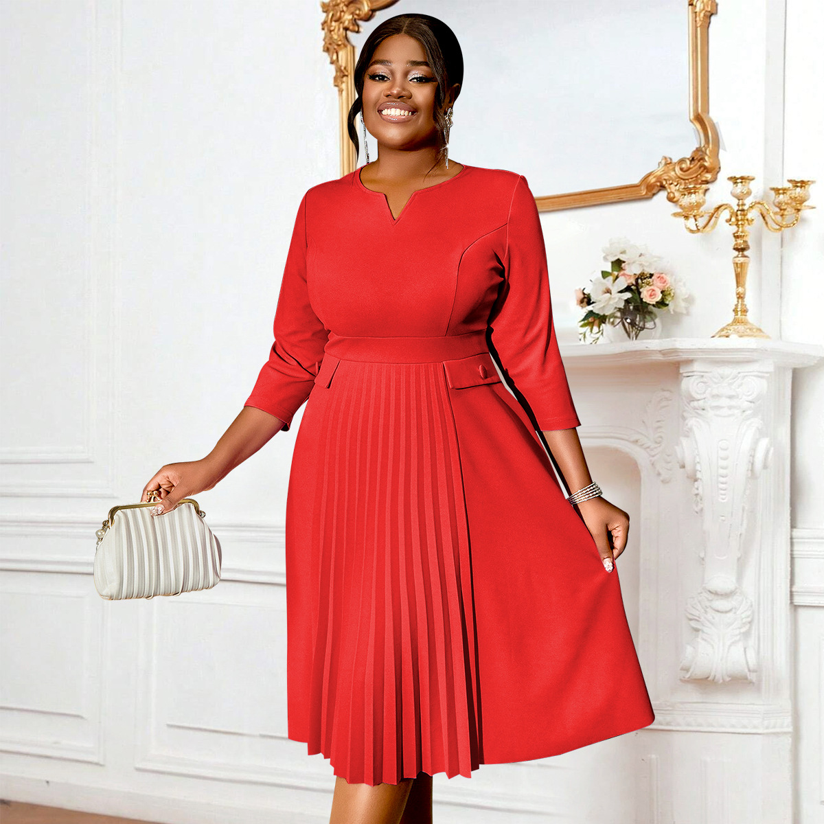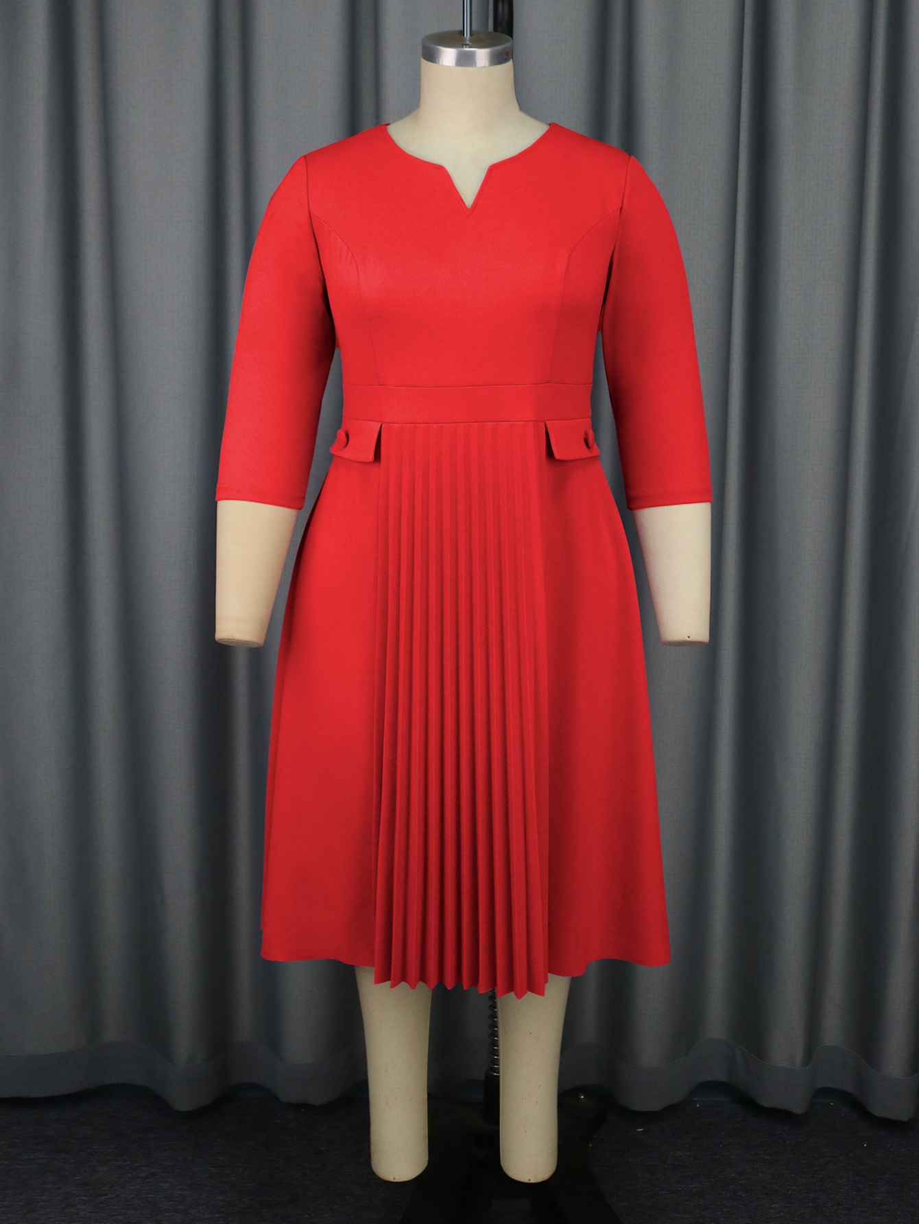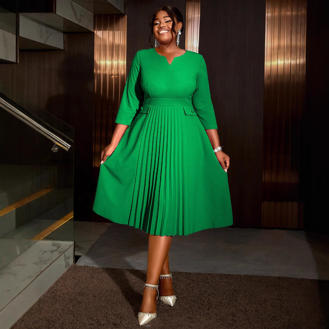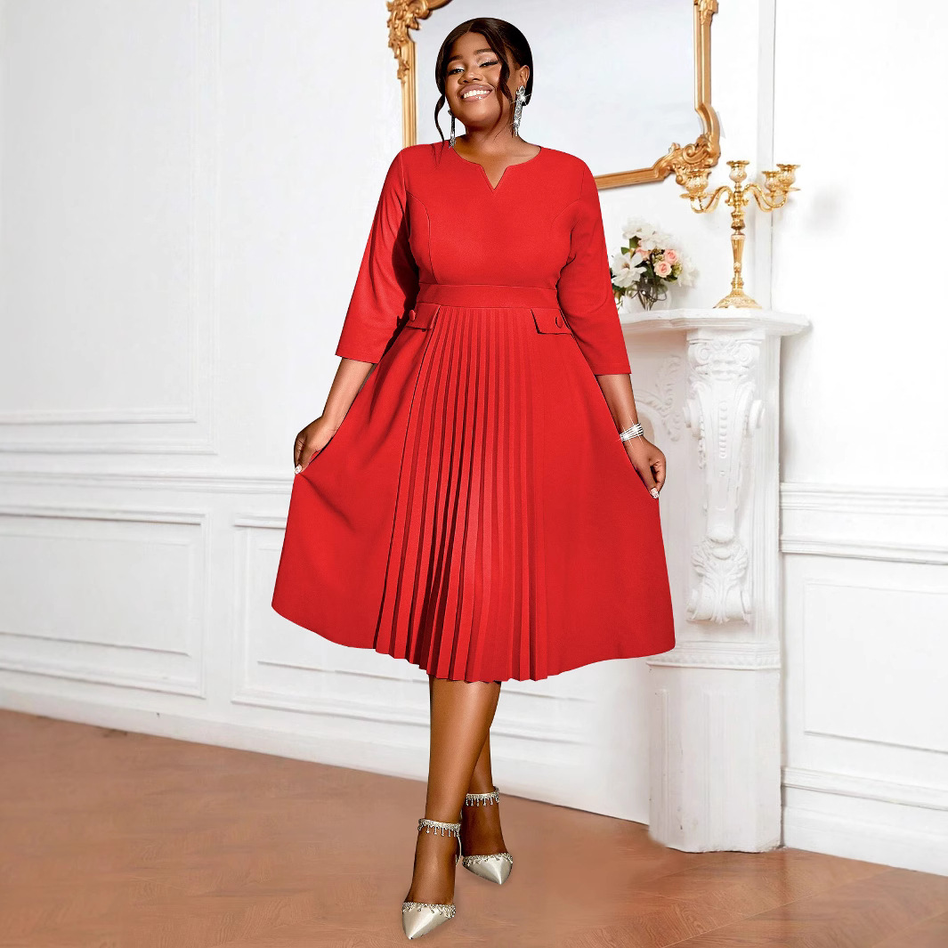AM040920 Foreign Trade Fashion pleated skirt Solid color pleated plus size dresses