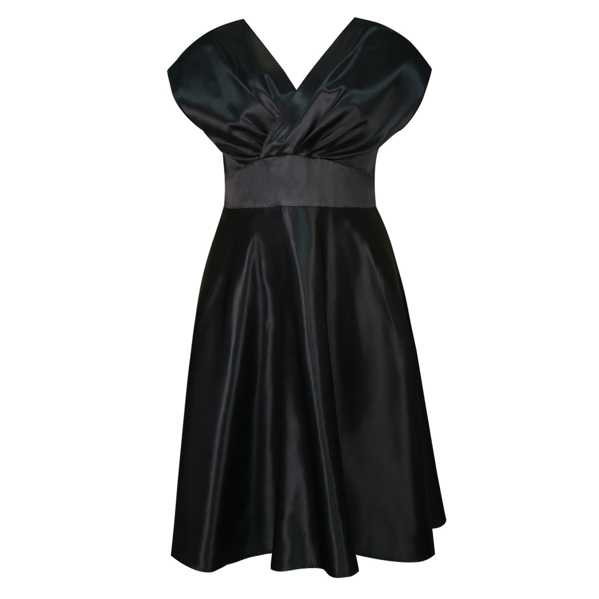 Large size black satin non elastic dress A hem sleeveless V-neck commuting elegant dress Dress party