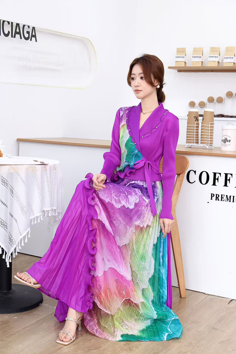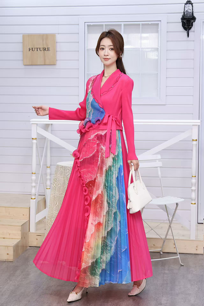 | Popular elements/craftsmanship | Lotus leaf edge+pleats+fungus+nail beads+splicing+stretchability+pleat splicing+accordion pleats+printing |