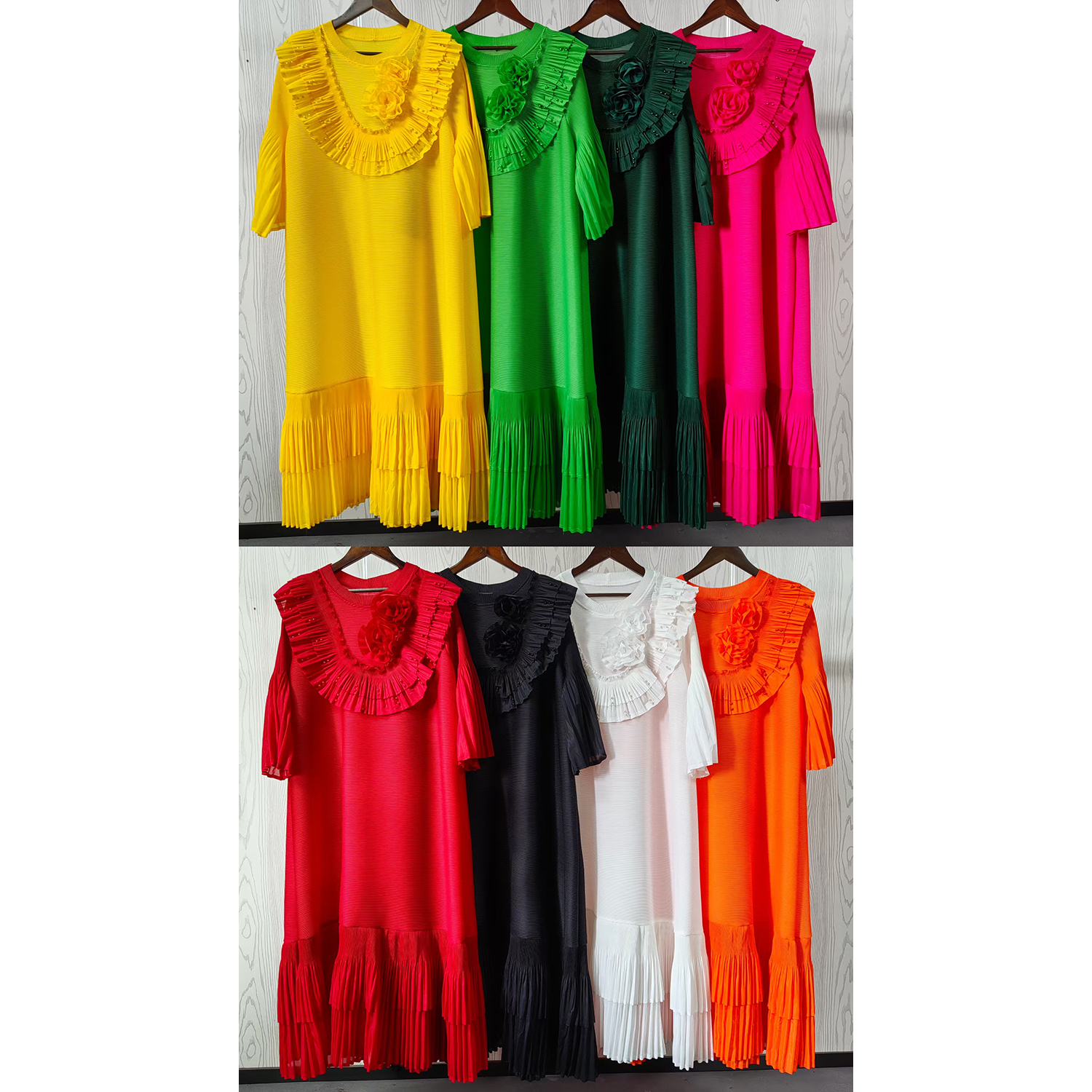 Sanzhai 2025 new lotus leaf edge three-dimensional flower nail bead loose oversized pleated heavy industry European and American cross-border dress