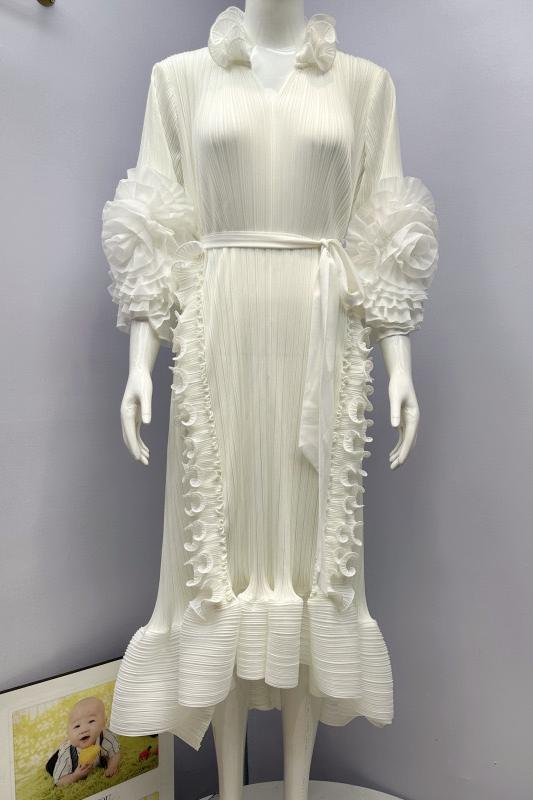Sanzhai Foreign Trade European and American Style Black Fungus Edge Folded Dress with a Light and Mature Style, Three Dimensional Flower Solid Color, Large Skirt for Women