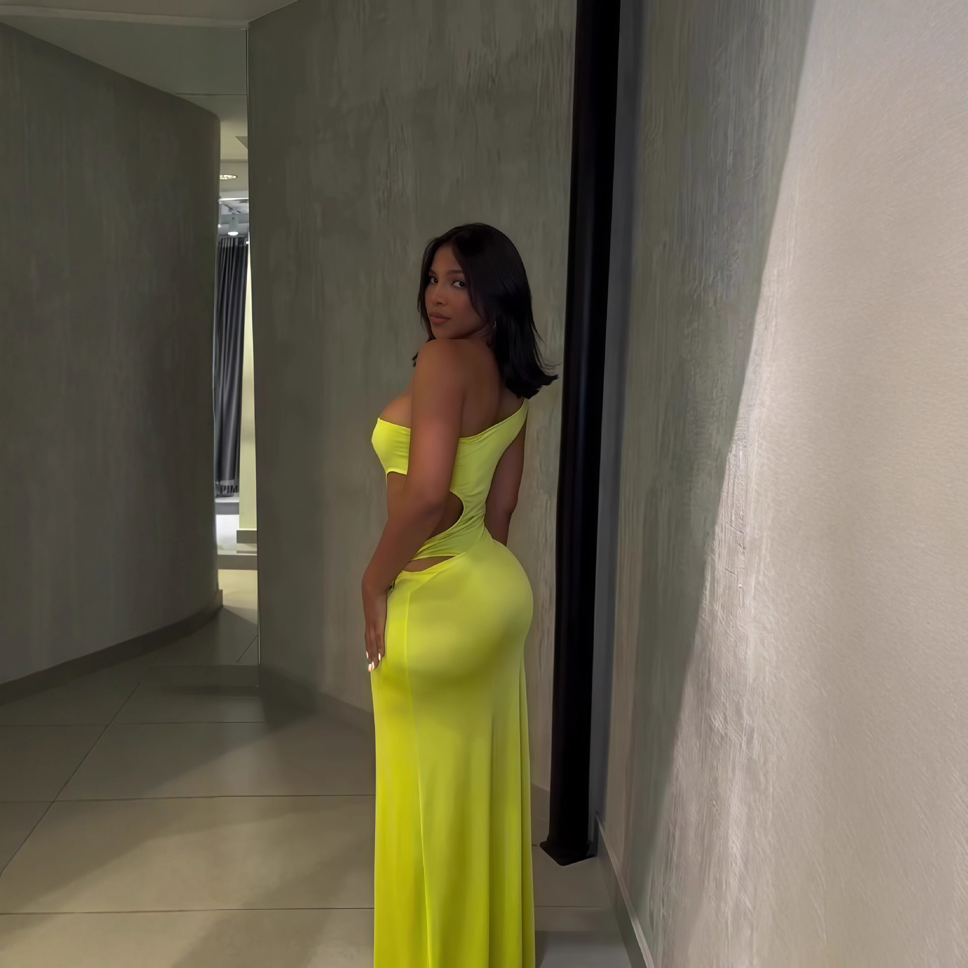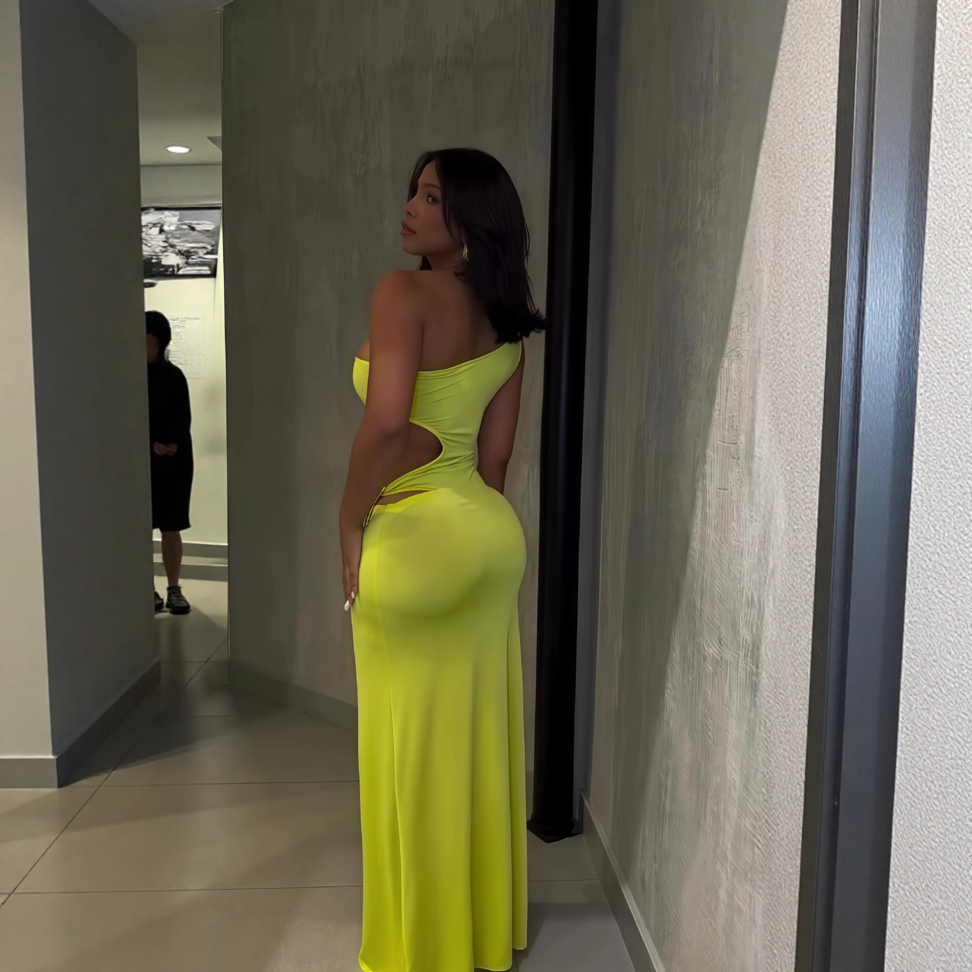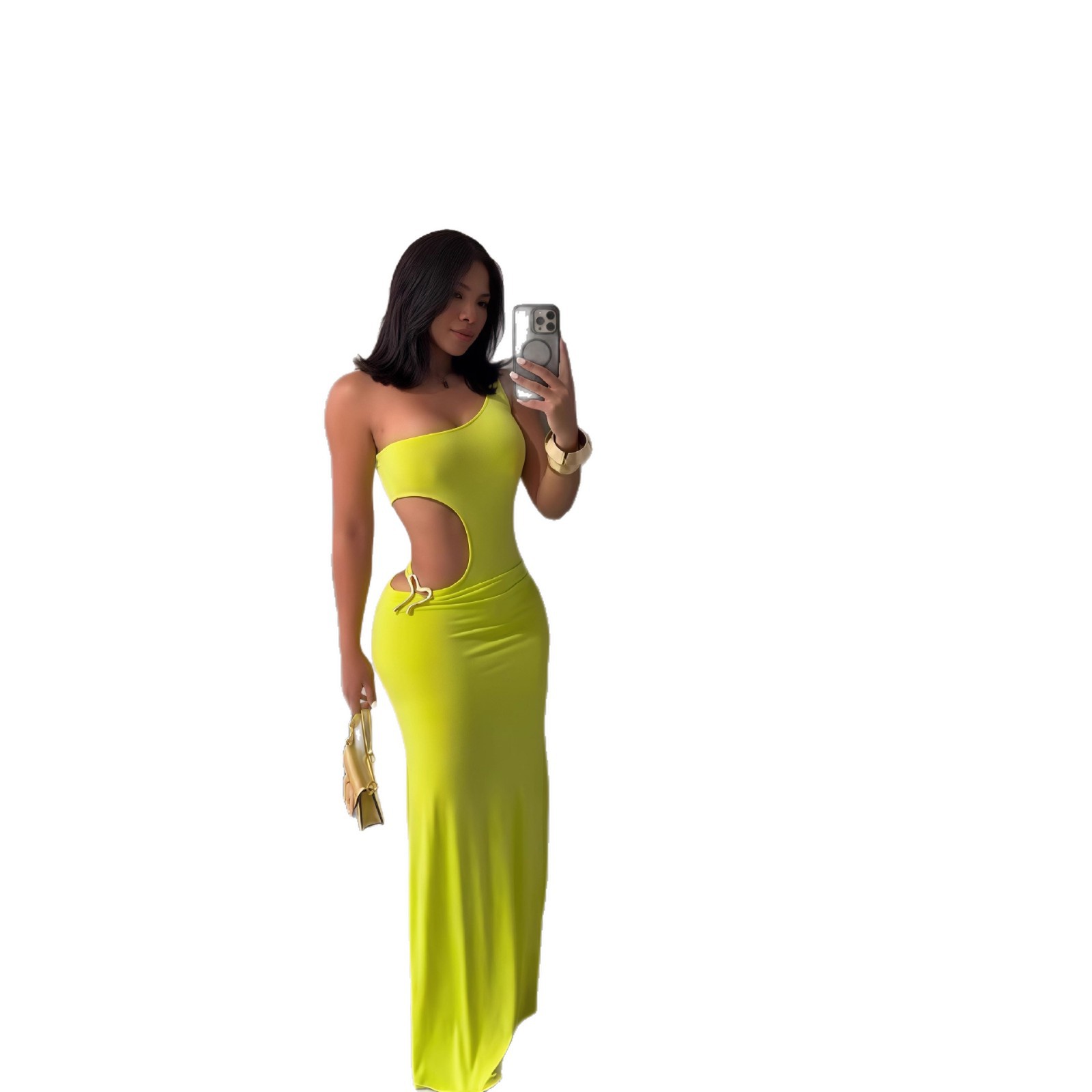 European and American Cross border Women's Wear 2025 Autumn New Solid Color Sleeveless Slant Neck Single Shoulder Hollow Out Long Dress