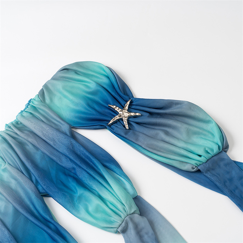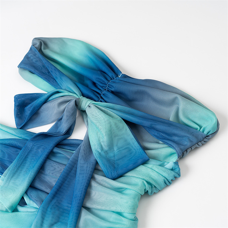 Foreign Trade 2025 Summer New European and American Style Women's Fashion Sexy Spicy Girl Printed Contrasting Color Wrapped Chest Bareback Dress