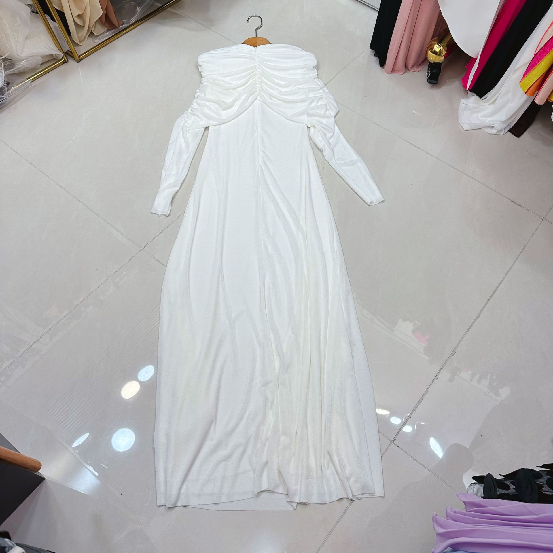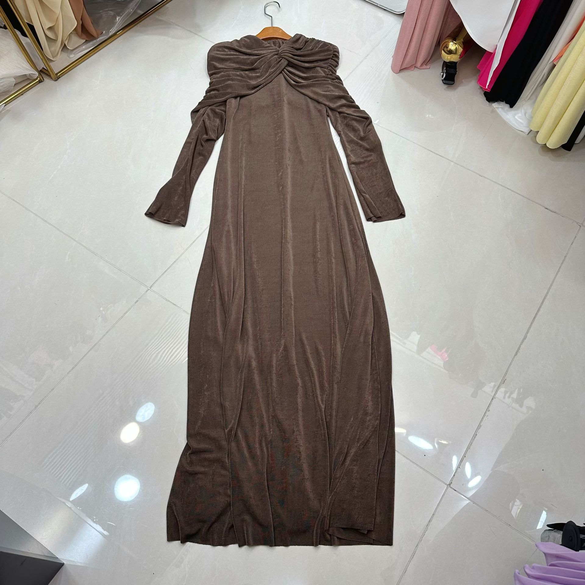Thirteen line pink knitted dress, a niche Vietnamese asymmetric twisted pleated hip hugging skirt, long skirt A1 # 8525