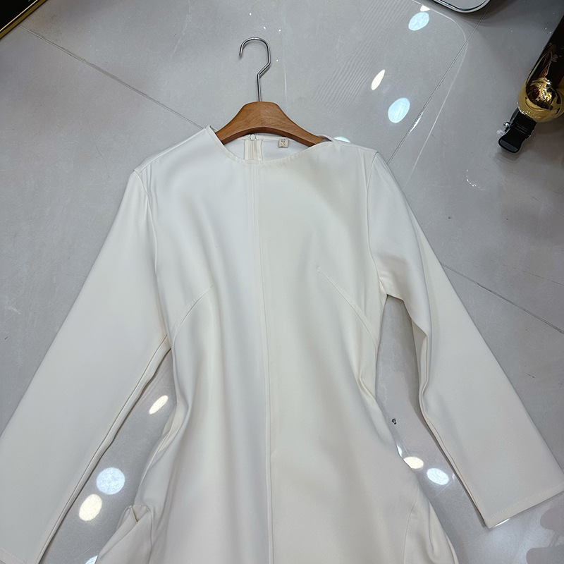 Thirteen line Australian niche French slant collar long sleeved slim fit dress solid color premium A-line skirt A2 # 8570