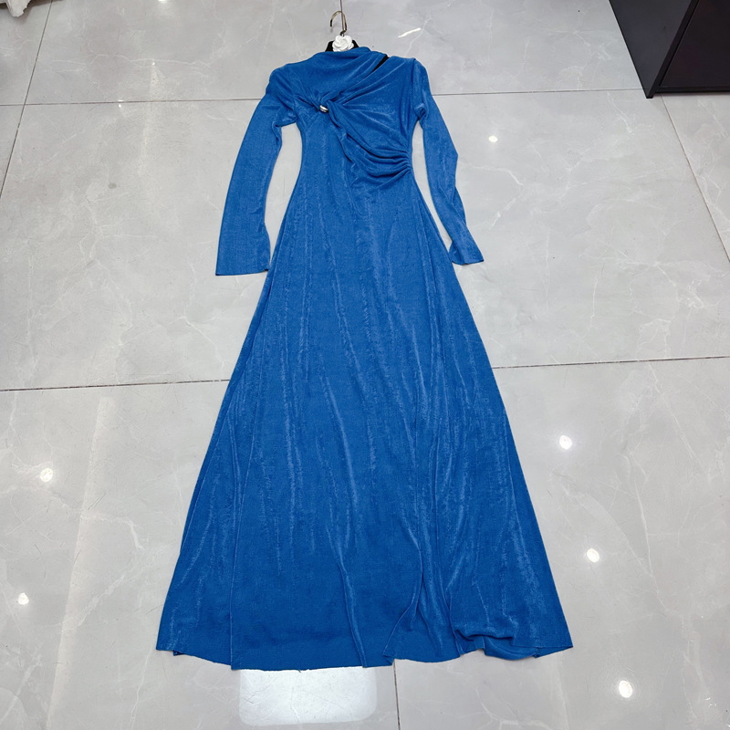 Thirteen line new slanted neck long sleeved metal buckle design cross French socialite style dress C1 # 1622