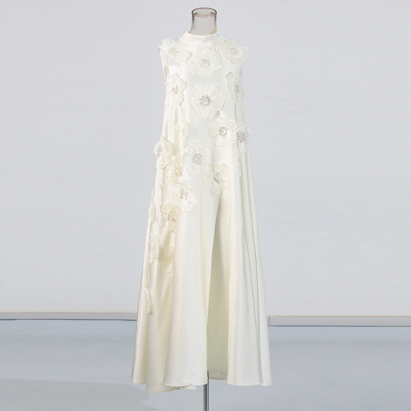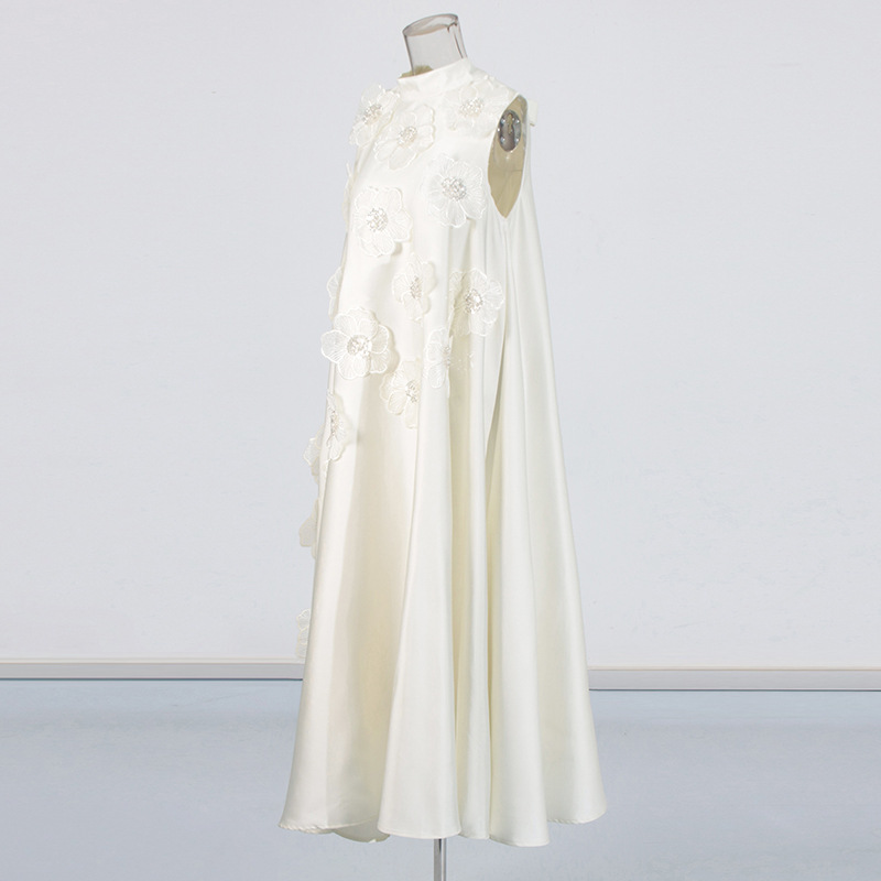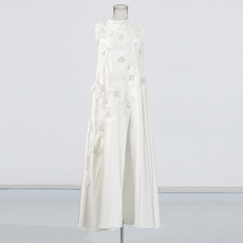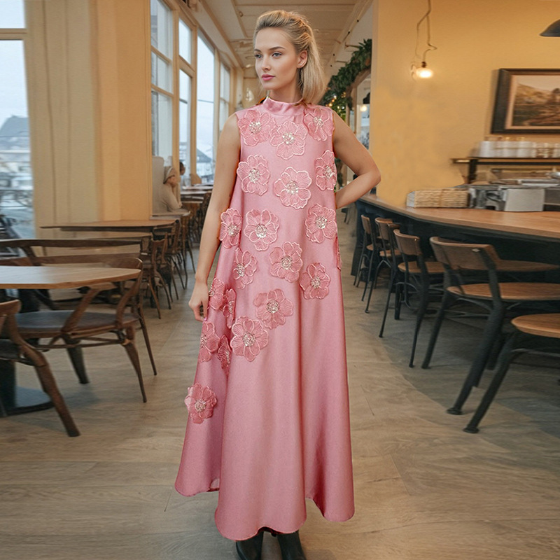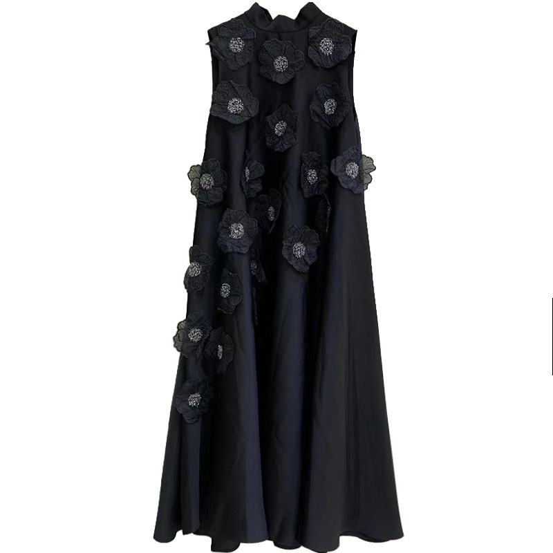 European and American socialite Feng Heavy Industry flower collage dress 2025 new sleeveless three-dimensional high-end A-line long skirt for women