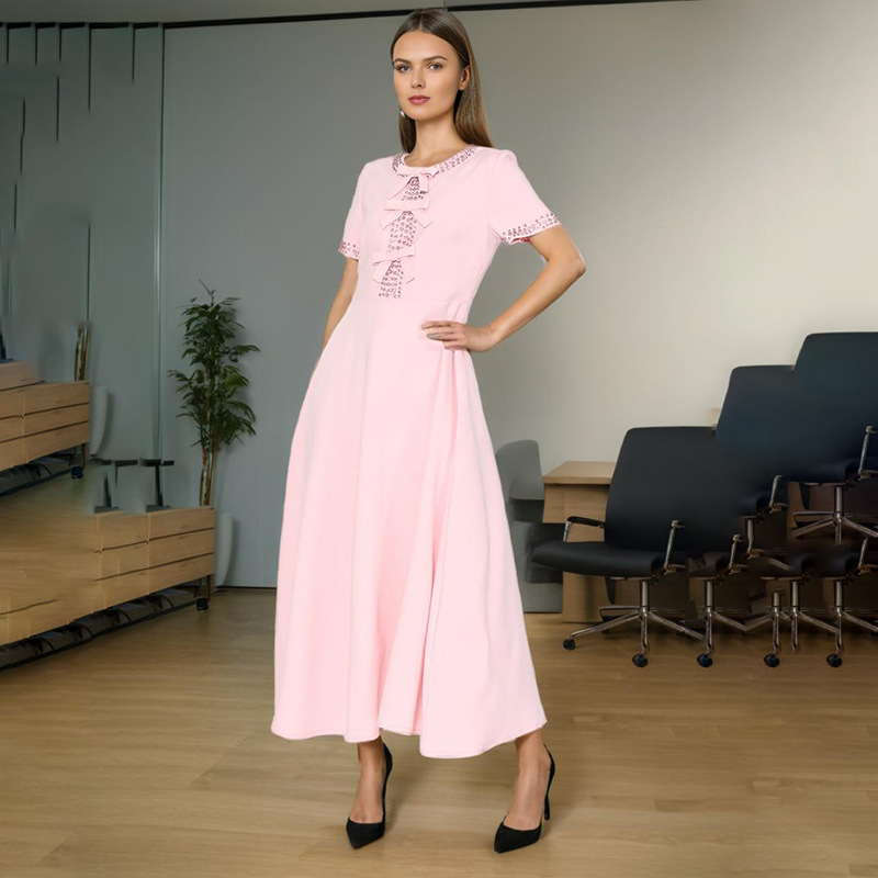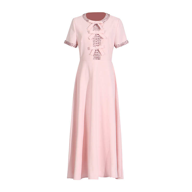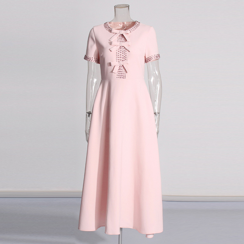 French socialite style long dress 2025 summer new heavy industry nail bead bow high waist high-end dress for women