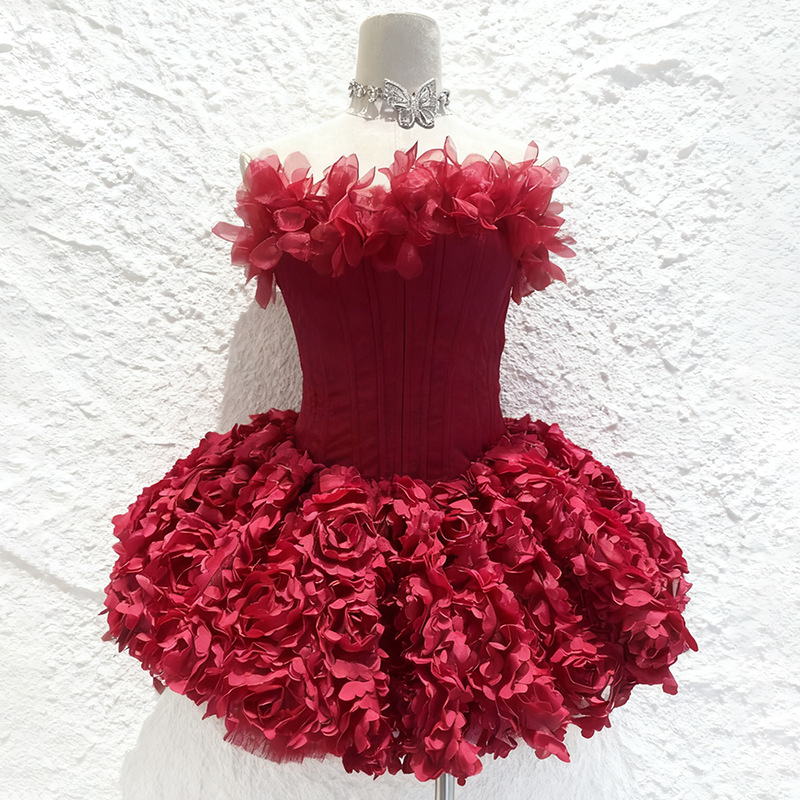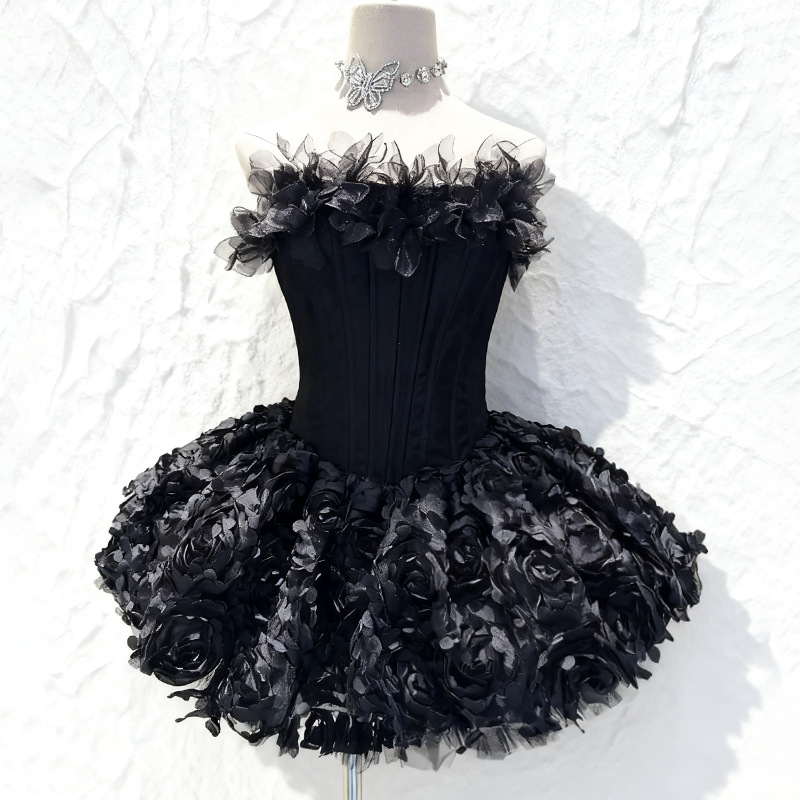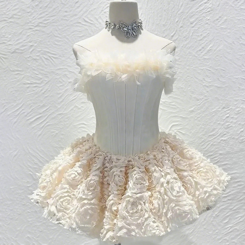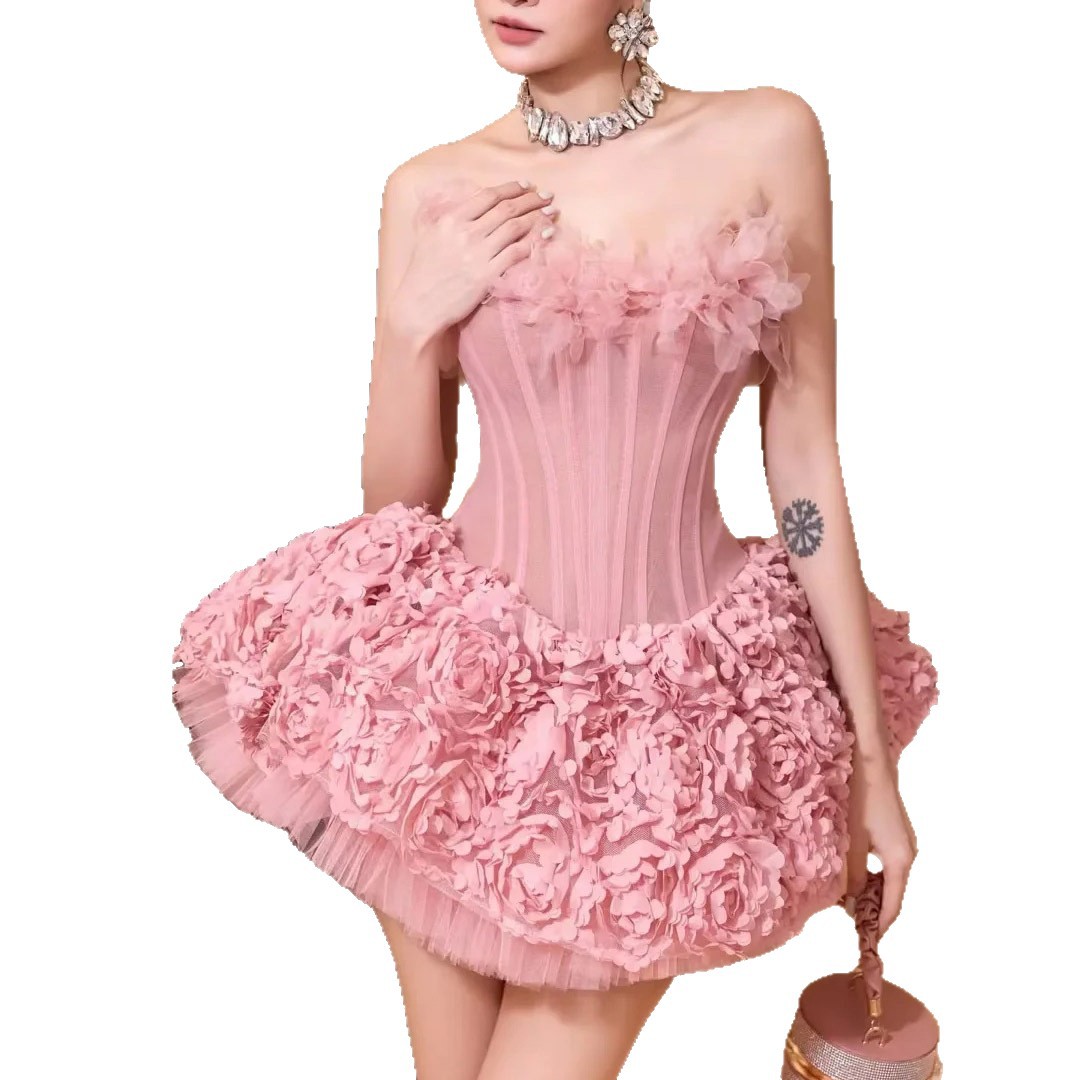 French socialite style three-dimensional flower dress for women 2025 new sleeveless strapless waist cinching mesh patchwork dress
