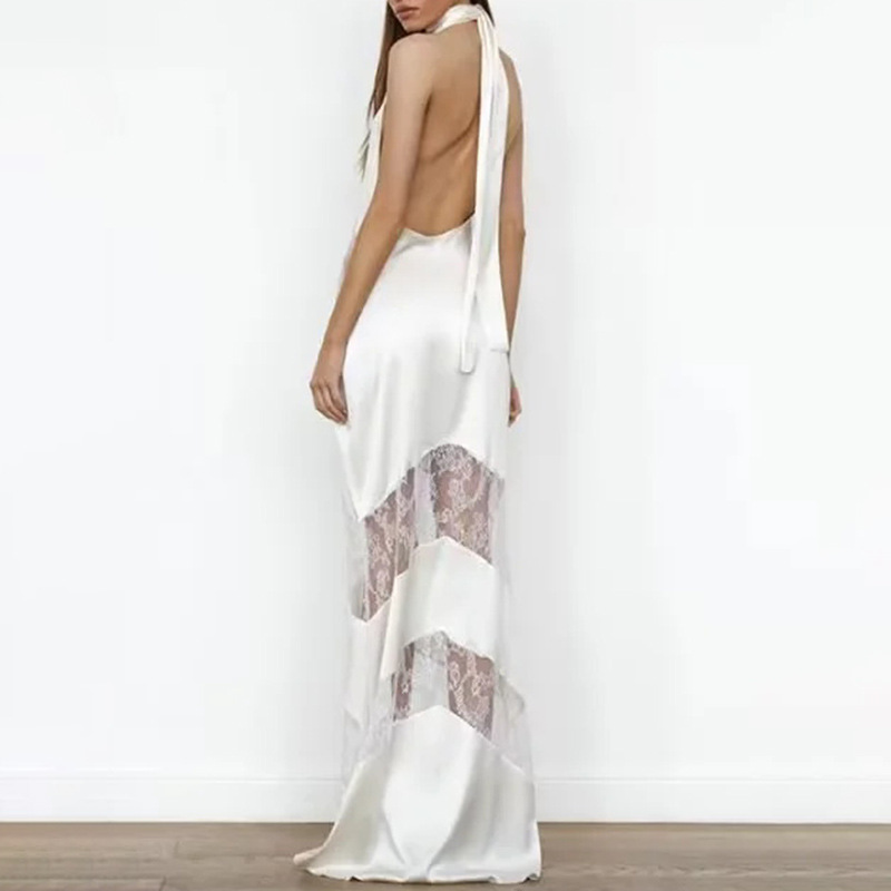 French high-end socialite style dress 2025 new style hanging neck sexy backless fashion V-neck dress for women in summer