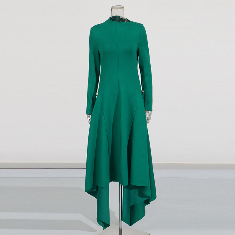 European and American cross-border elegant style slanted neck long skirt 2025 new irregular pleated design long dress for women