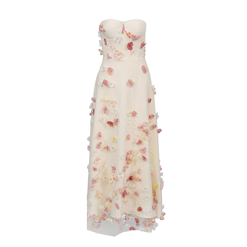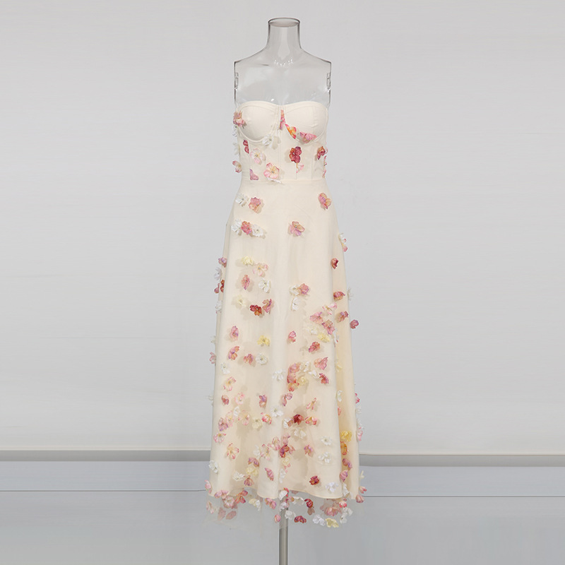 Fresh and sweet style high-end dress dress 2025 summer new sleeveless strapless embroidered design flower long dress for women