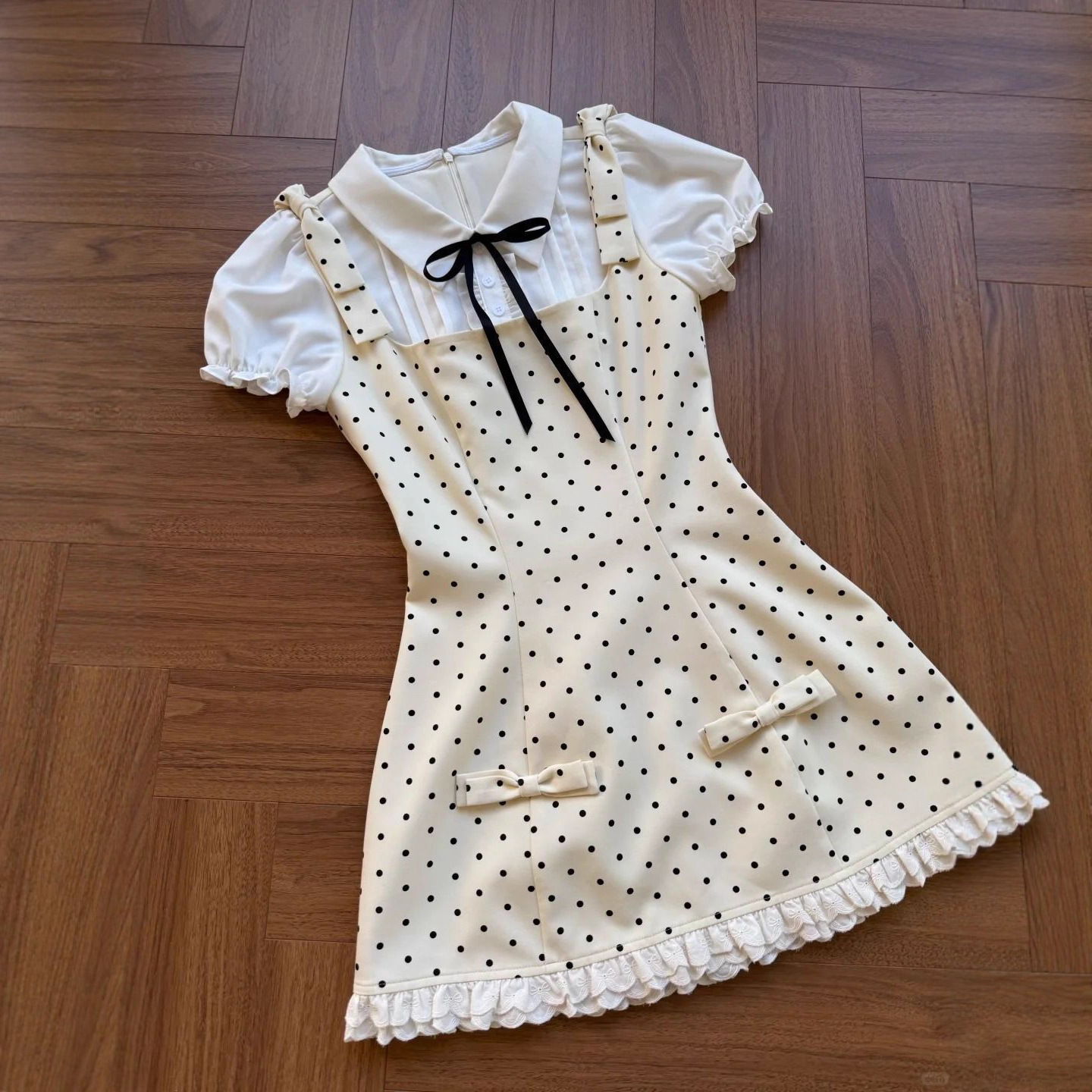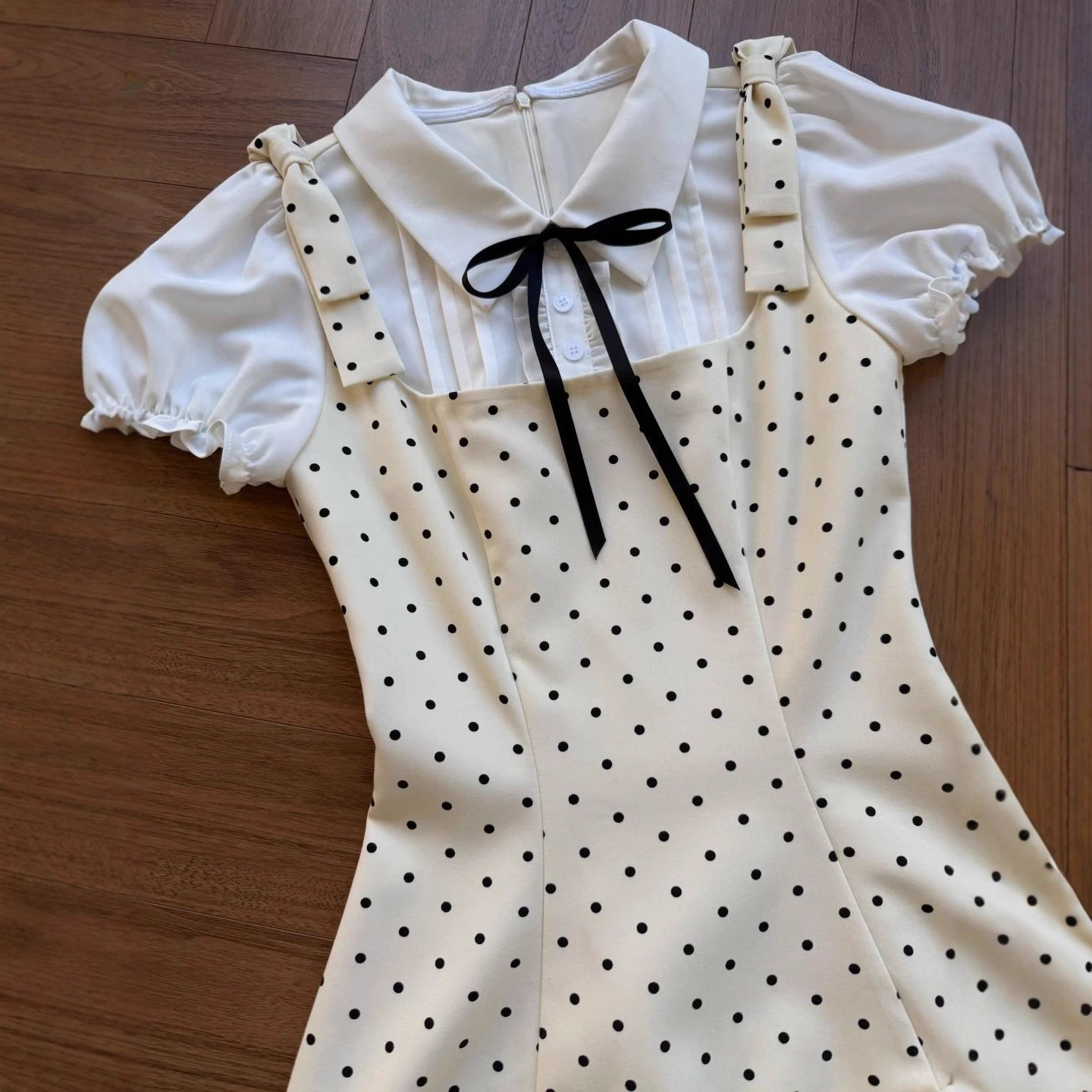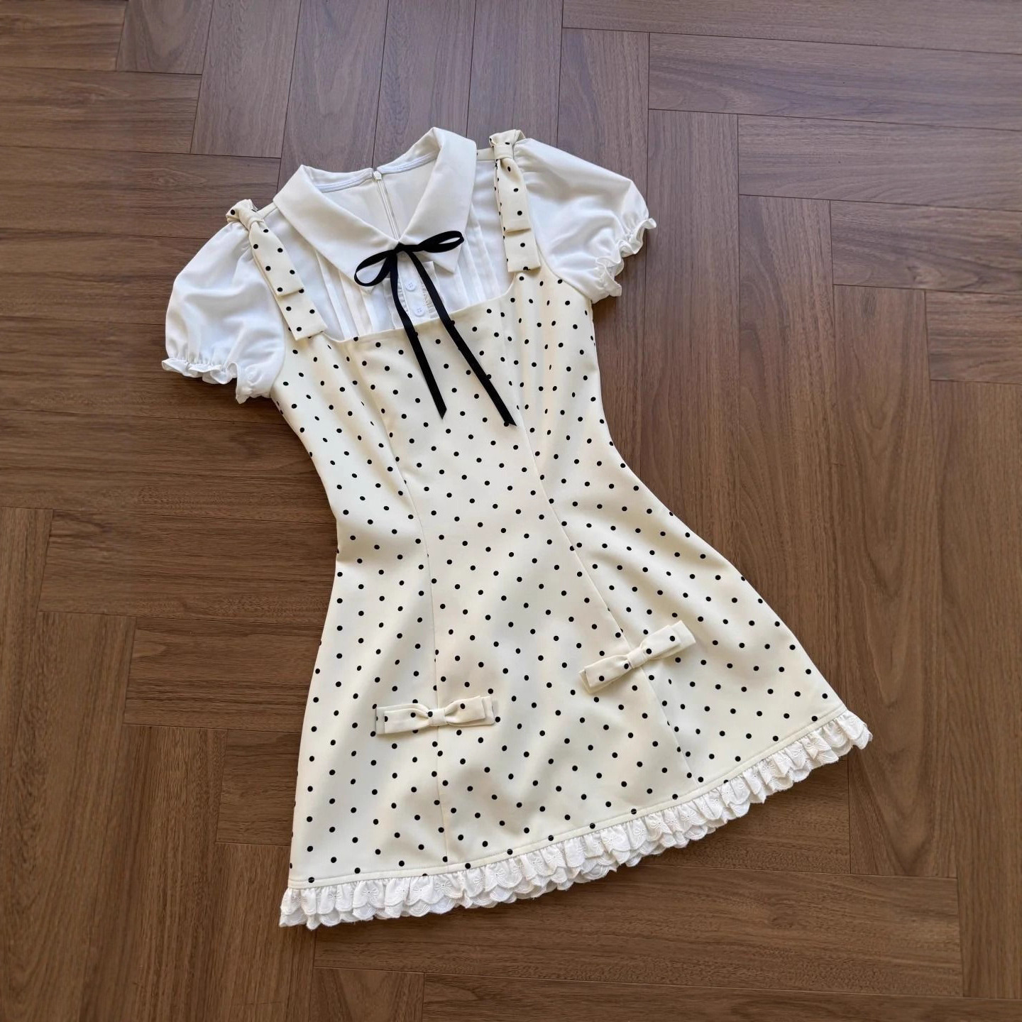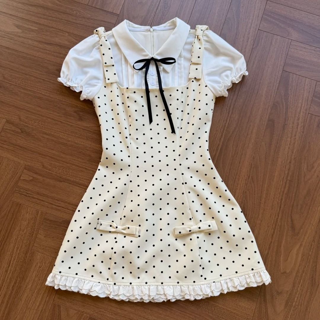 Girls' Korean style backwave point fake two-piece camisole dress, mid size children's summer new style spotted princess style A-line skirt