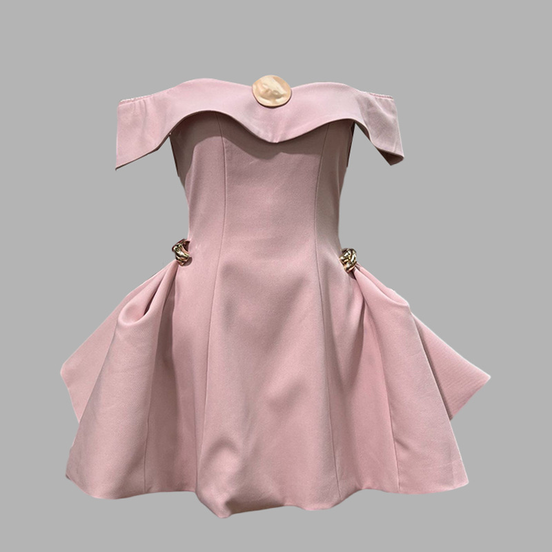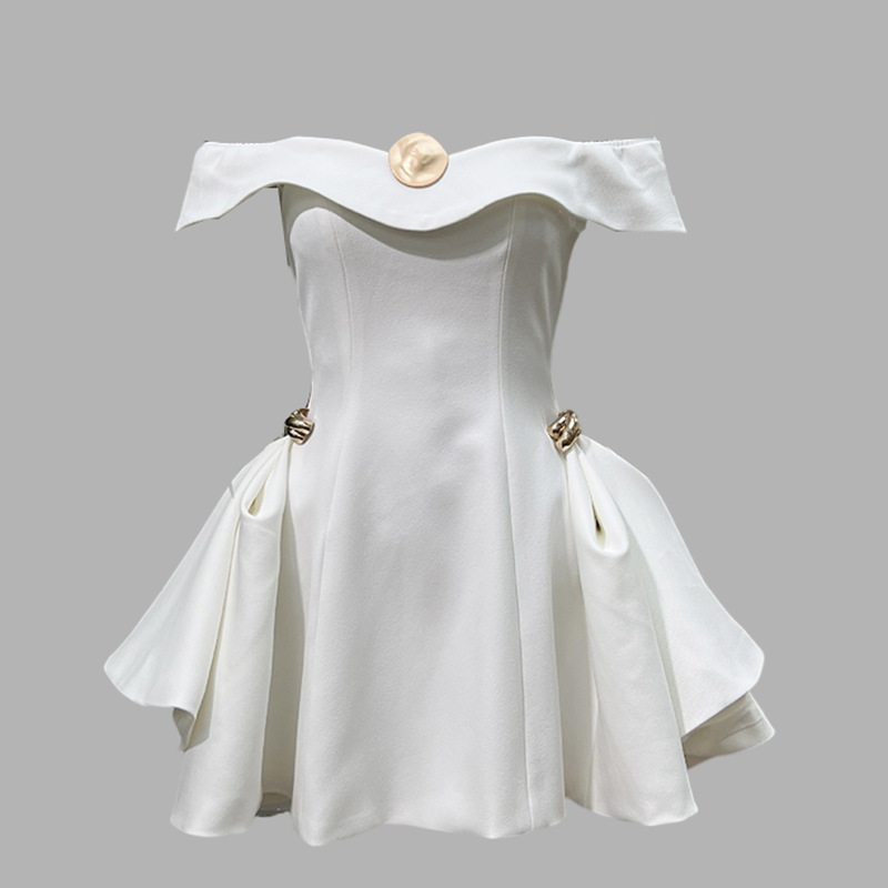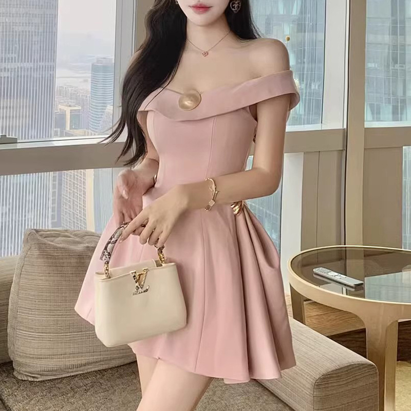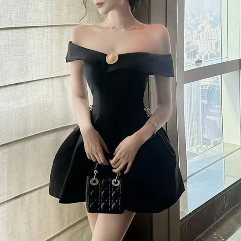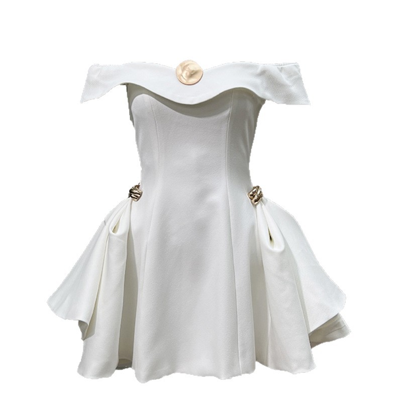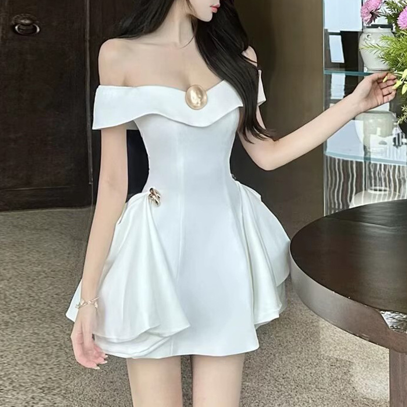 French sexy pure desire style short skirt for women 2025 summer new fashionable one shoulder waist solid color high-end dress