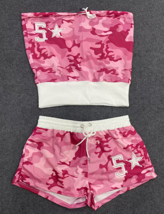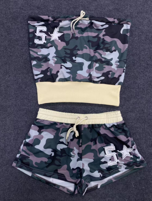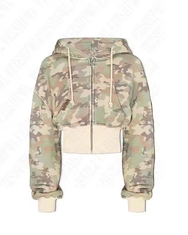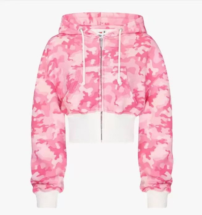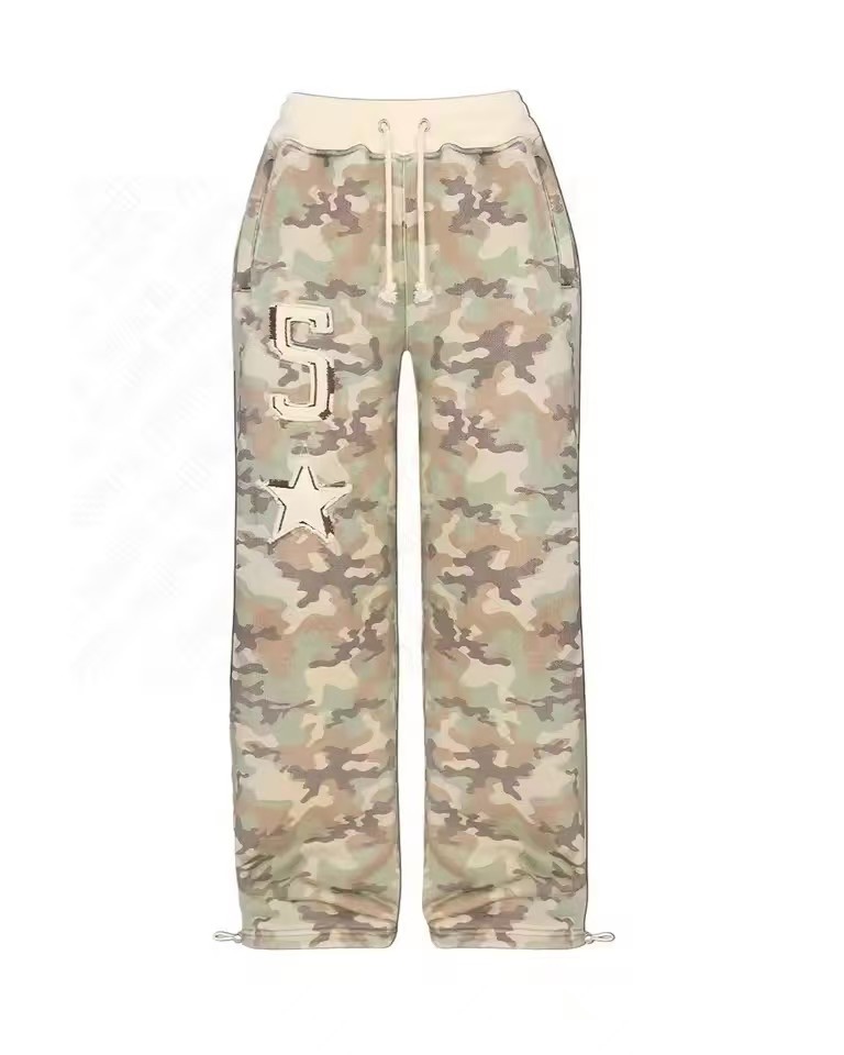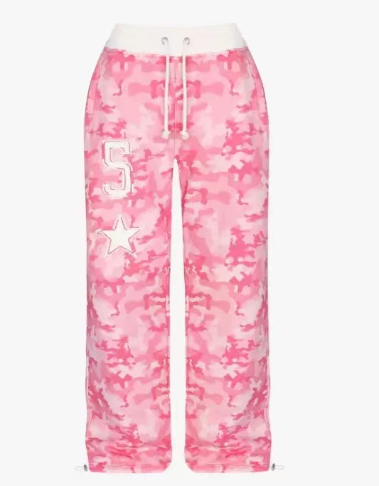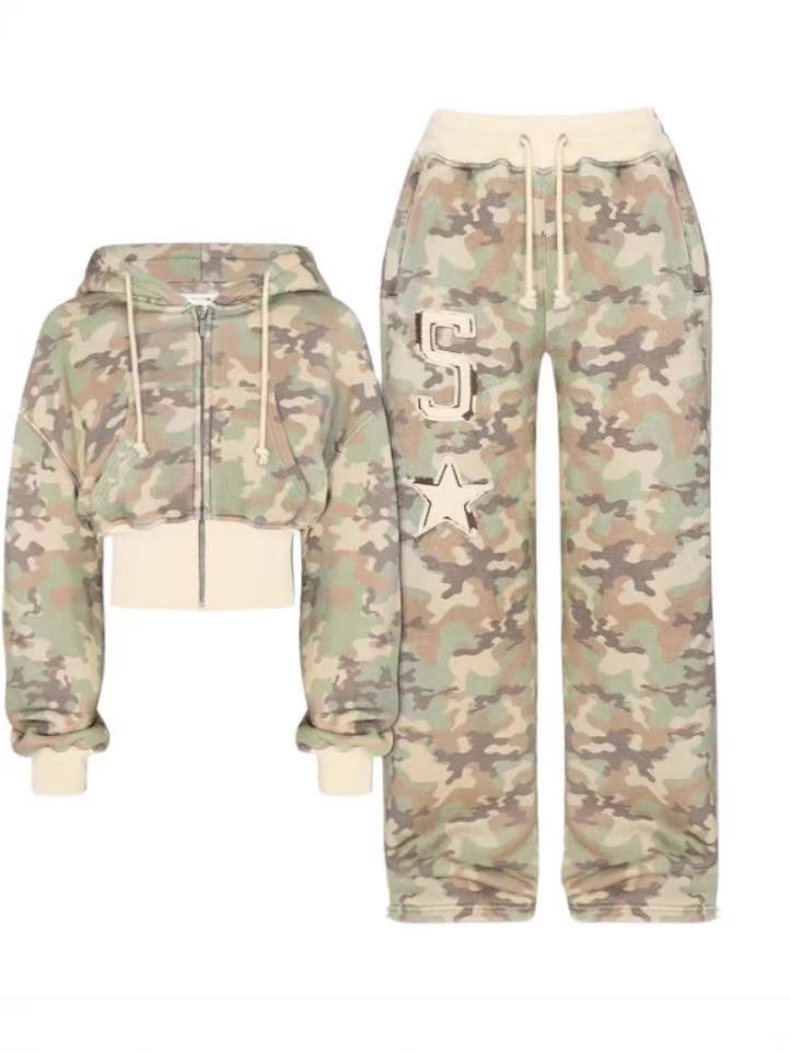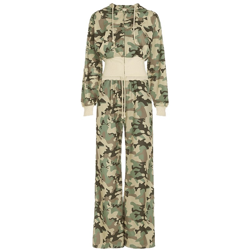 American street contrasting color waistband camouflage special hooded sweatshirt casual straight leg sweatpants fashionable two-piece set for women