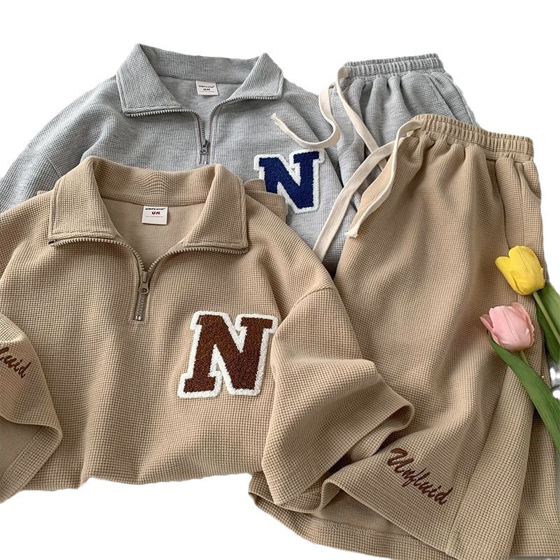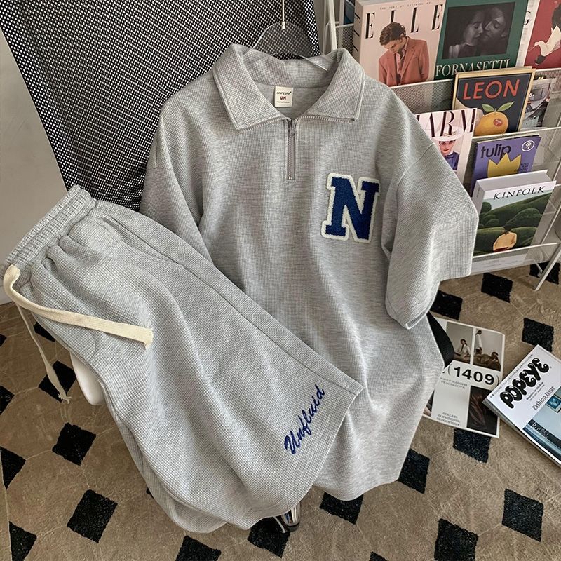 Single piece/set Waffle casual sports suit for men and women summer new shorts polo top two-piece set trendy