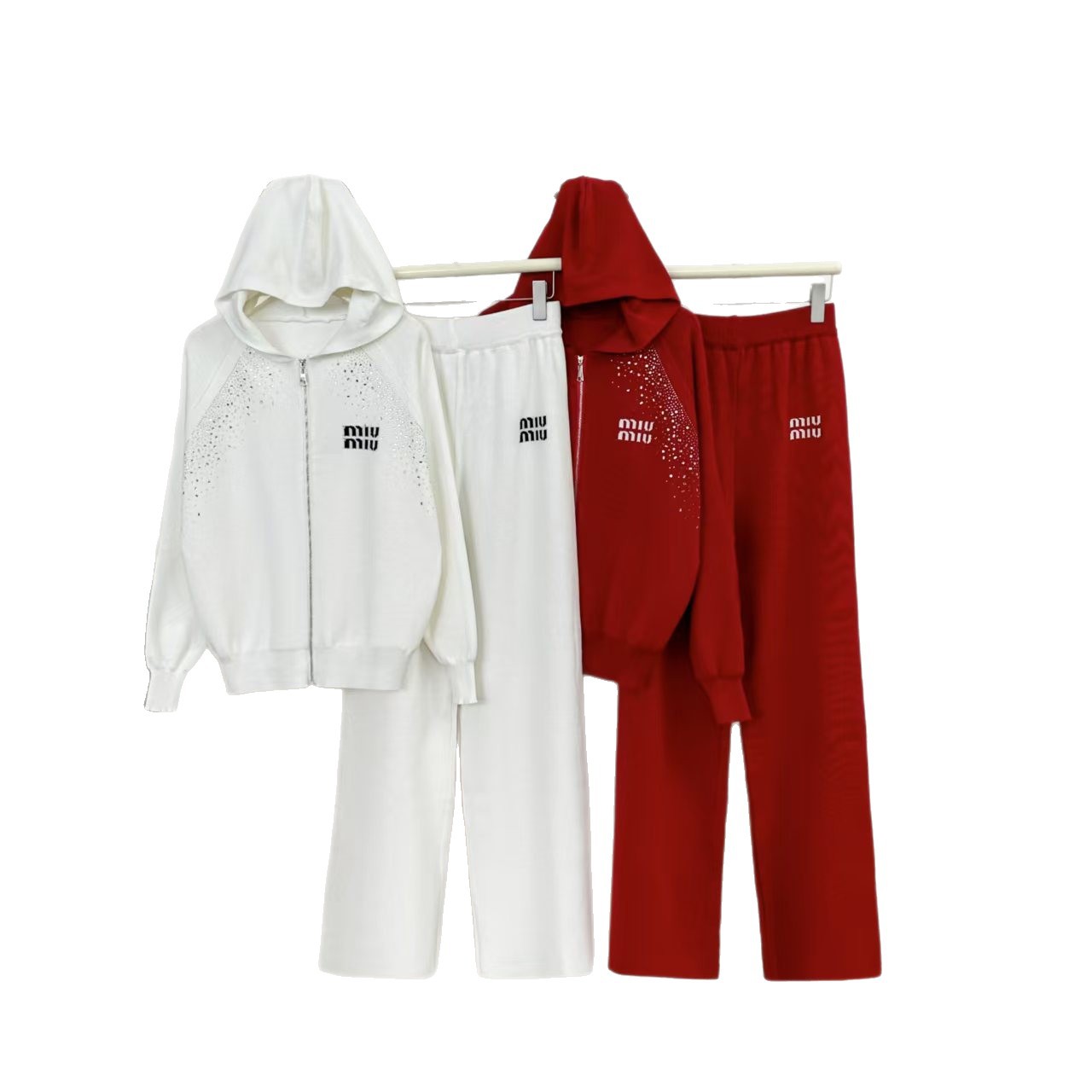 Cross border 2025 hooded style fashionable letter new embroidery casual zipper knitted jacket wide leg pants two-piece set