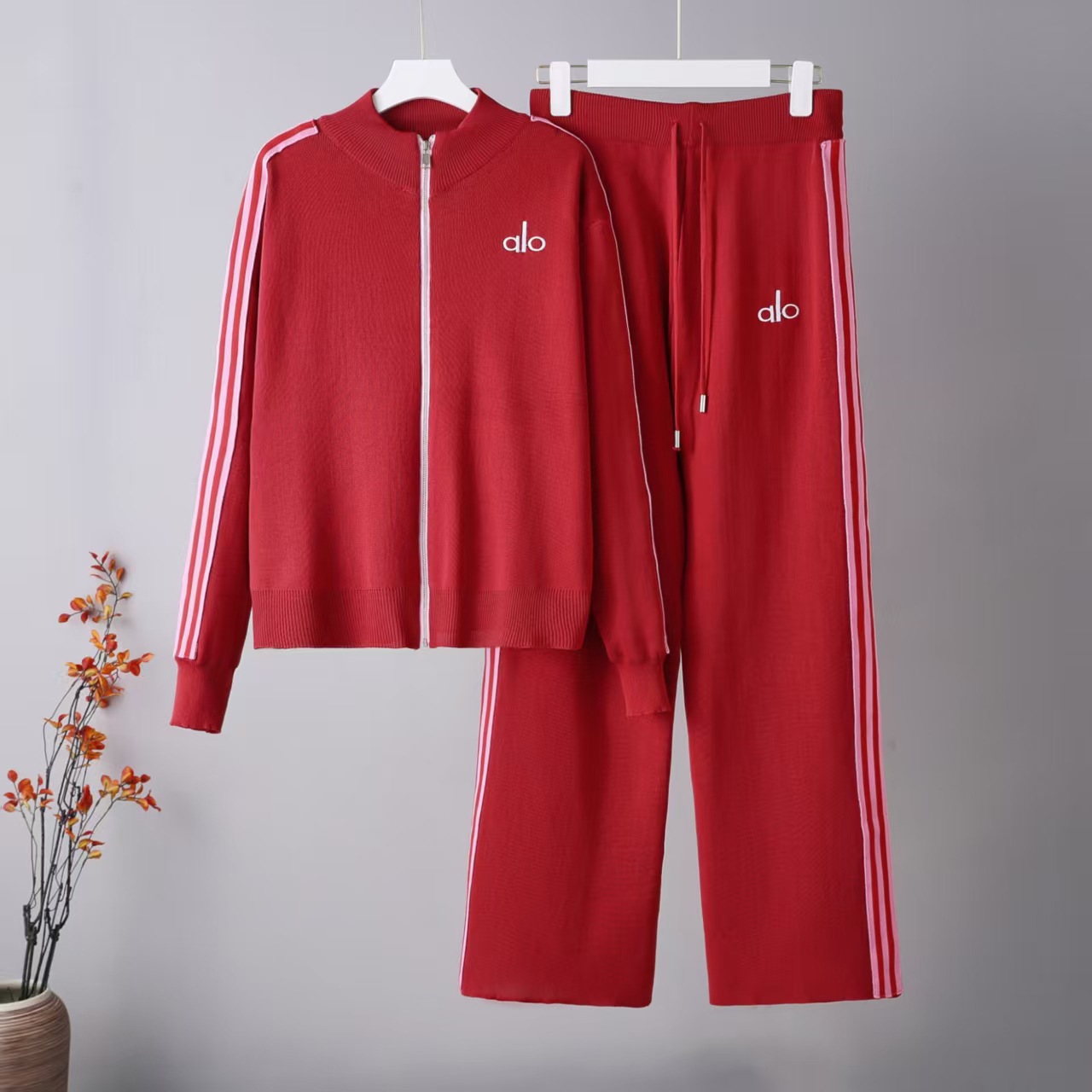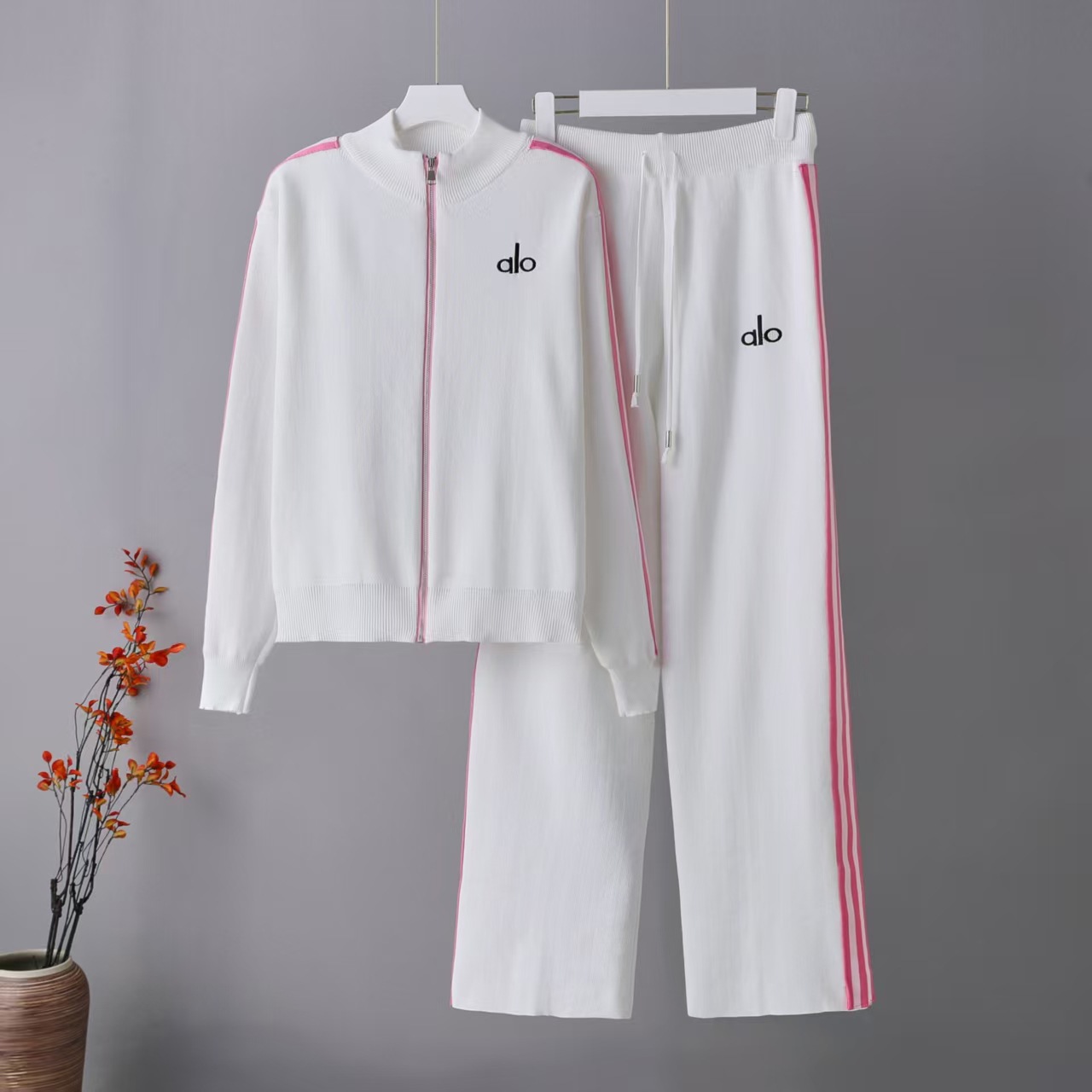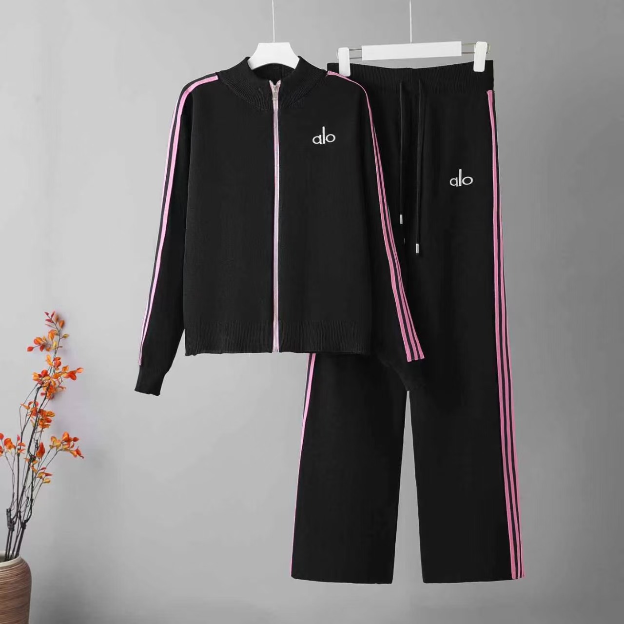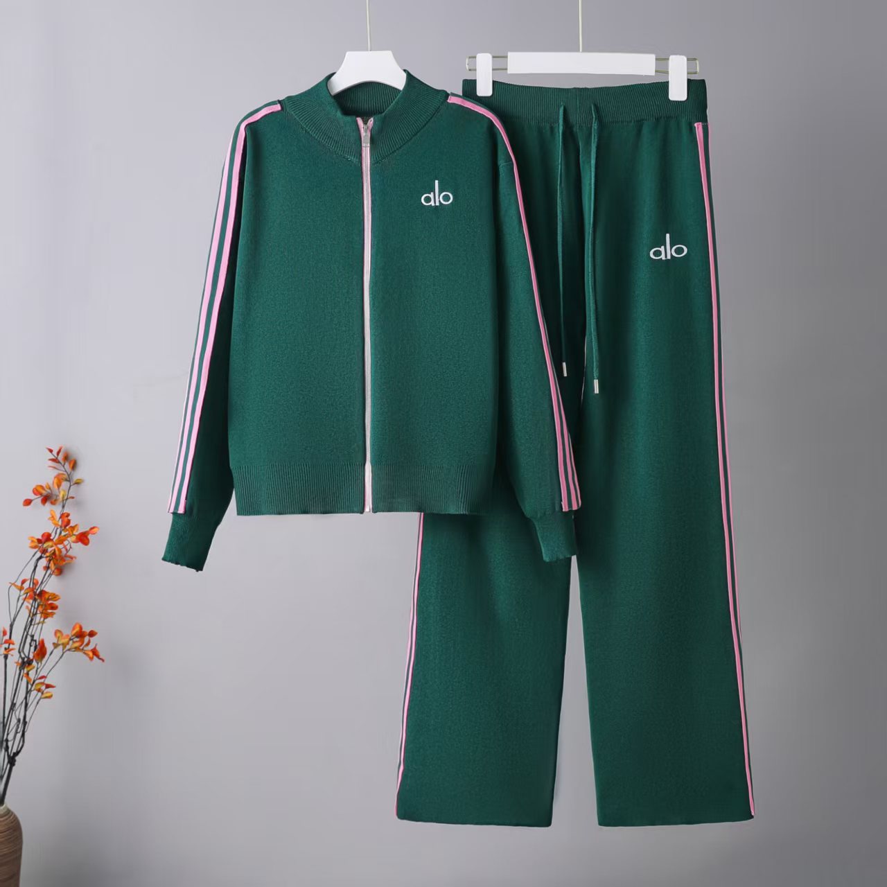 Cross border Fashion Sports Knitted Set 25 Spring/Autumn New Style Korean Edition cardigan casual wide leg pants two-piece set