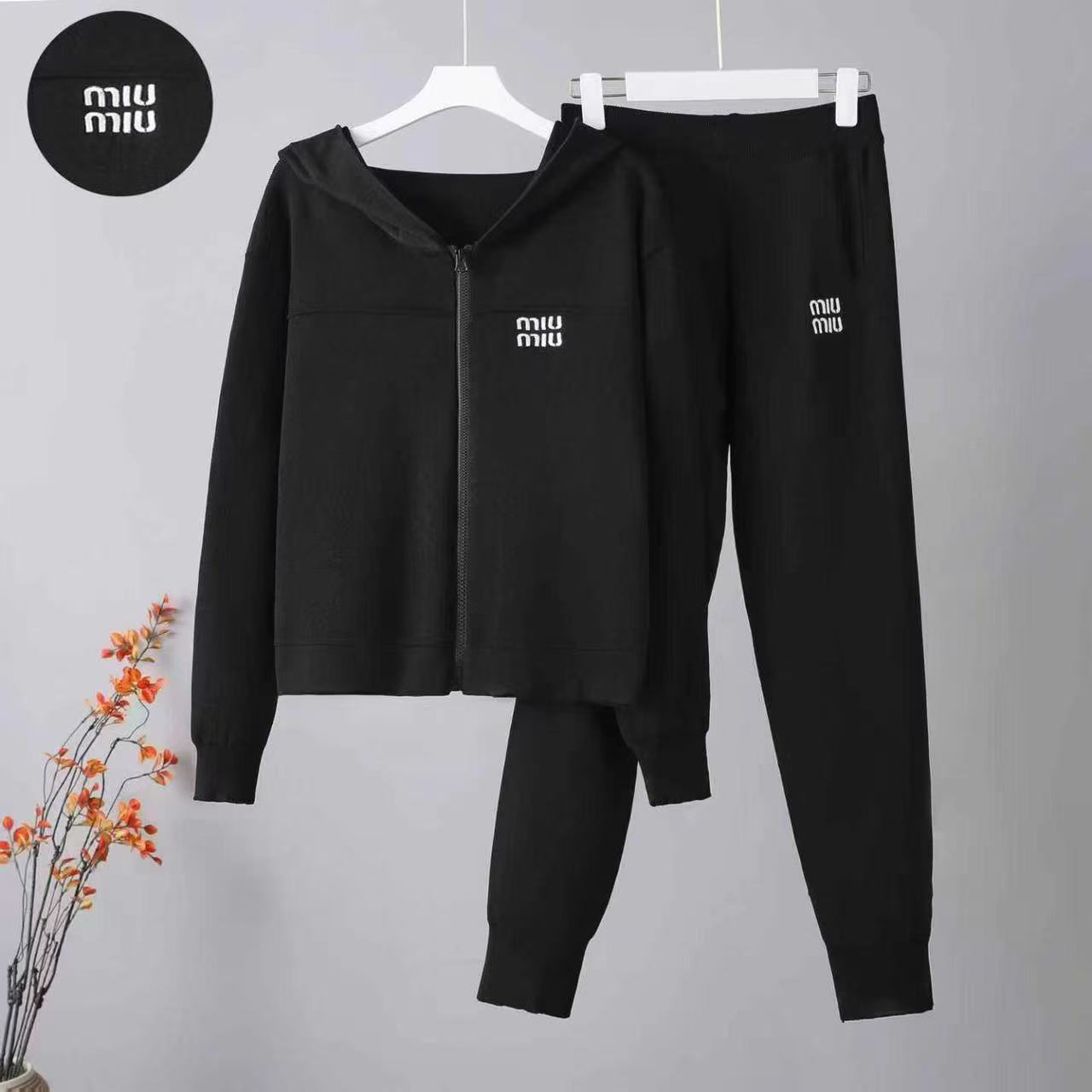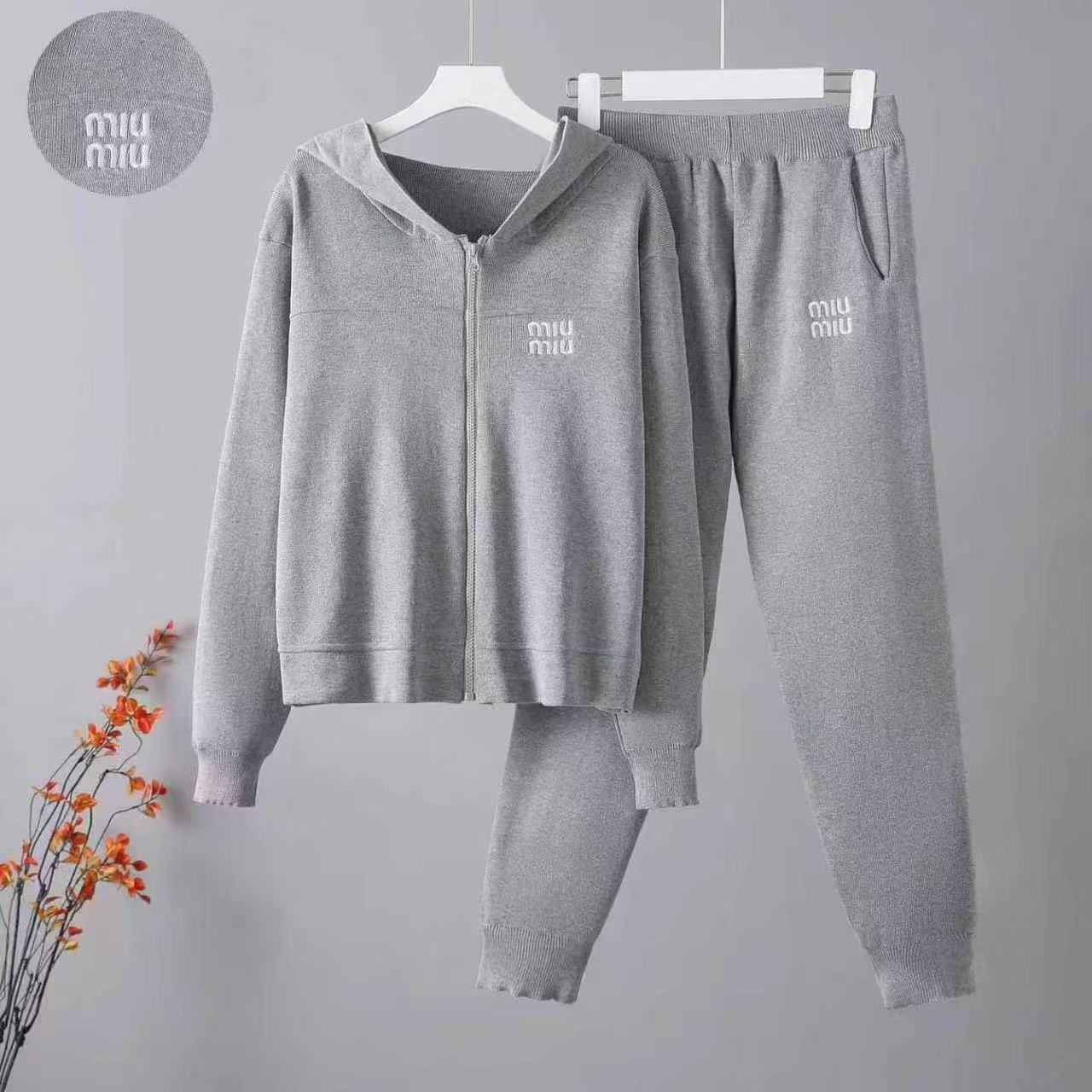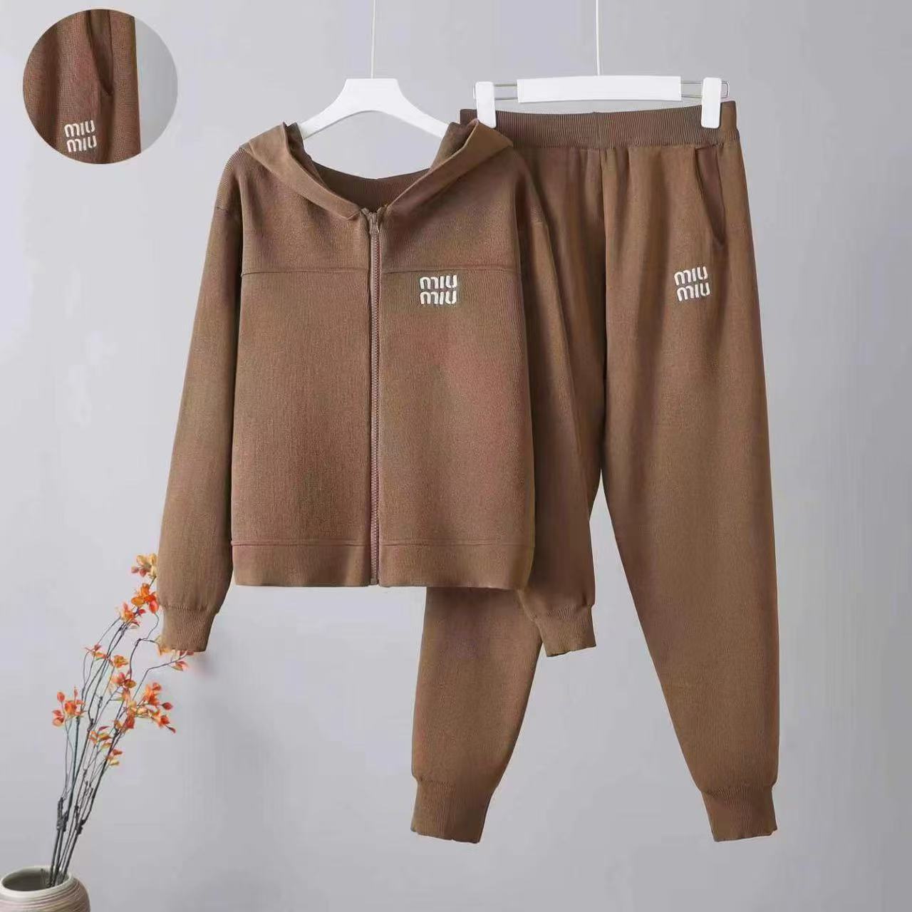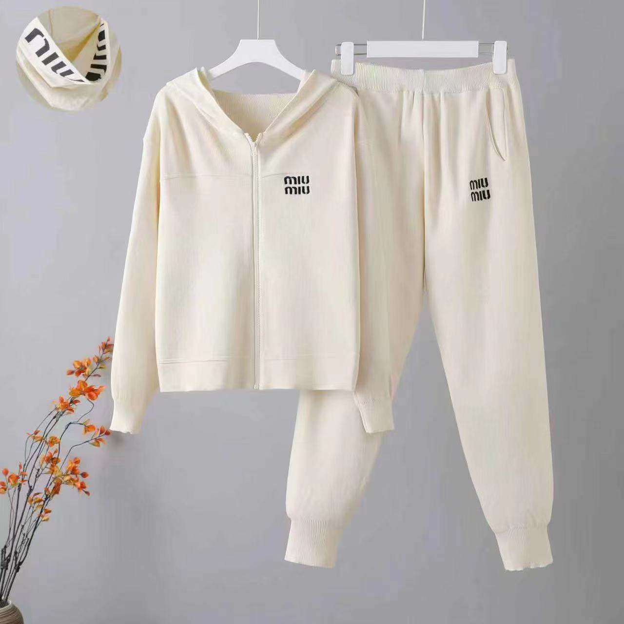 Cross border Xiaoxiang style sports suit for women in spring 2025, casual hooded knitted top, slimming and leg binding pants two-piece set