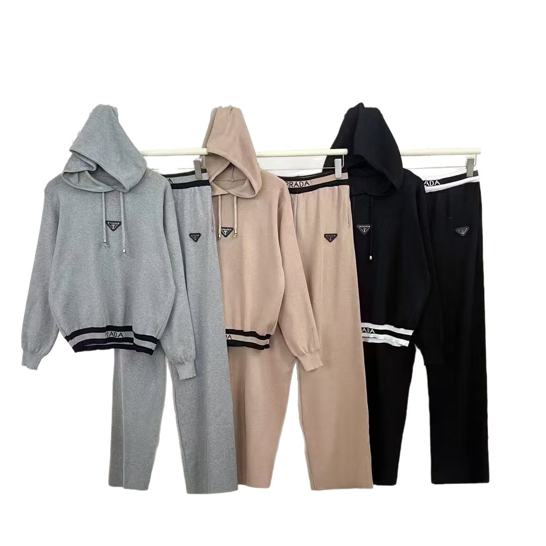 Foreign Trade Hooded Knitted Top for Women 25 Spring and Autumn New Style, Loose and Slim, Casual Sports Wide Leg Pants Set