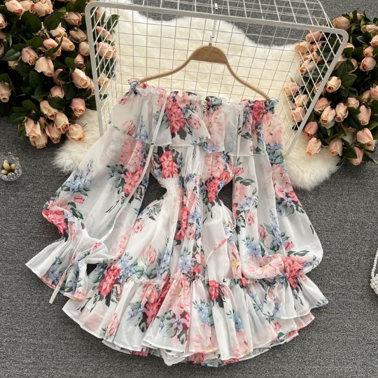 Beach vacation one shoulder off shoulder printed chiffon jumpsuit skirt super fairy loose wide leg pants shorts jumpsuit