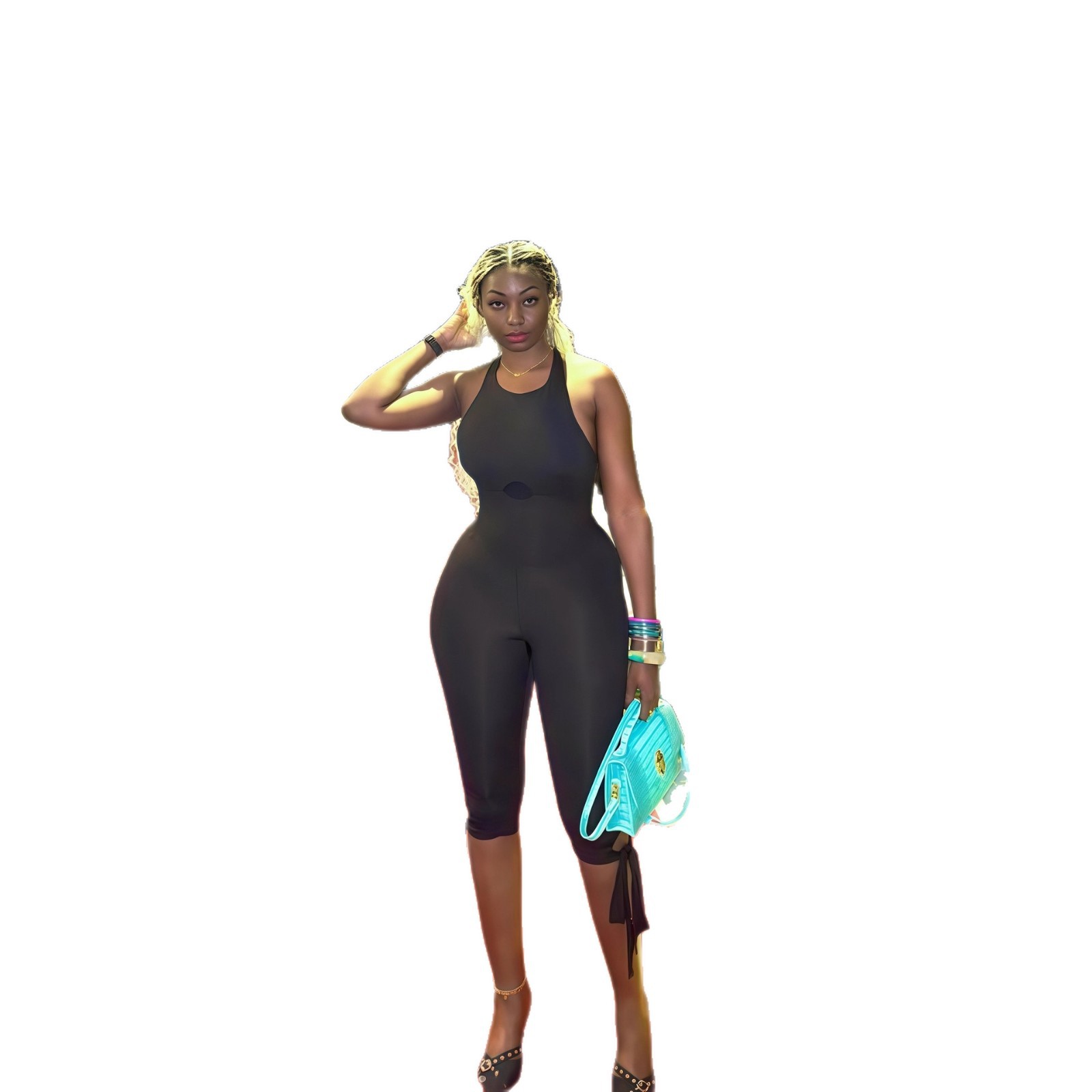 European and American Cross border Women's Wear 2025 Autumn New Collection Solid Color Sleeveless Shoulder U Collar Bareback Tight Leg Bundle jumpsuit