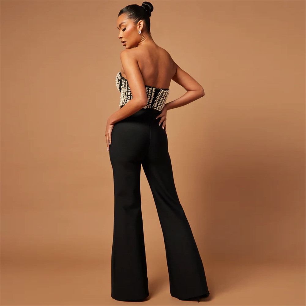 Nail bead tight chest wrapped wide leg pants, bandage jumpsuit, European and American high waist sexy new slim fit women's clothing, AliExpress