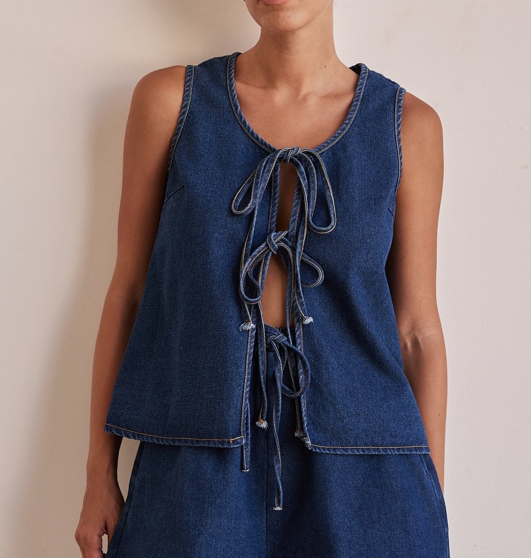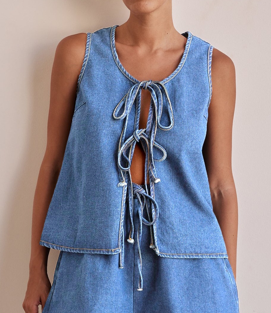 Independent station cross-border European and American style summer fashion casual sleeveless lace up high waisted women's vest denim suit shorts