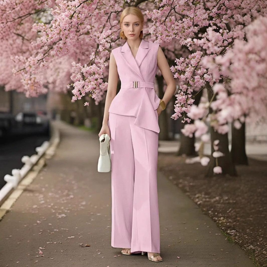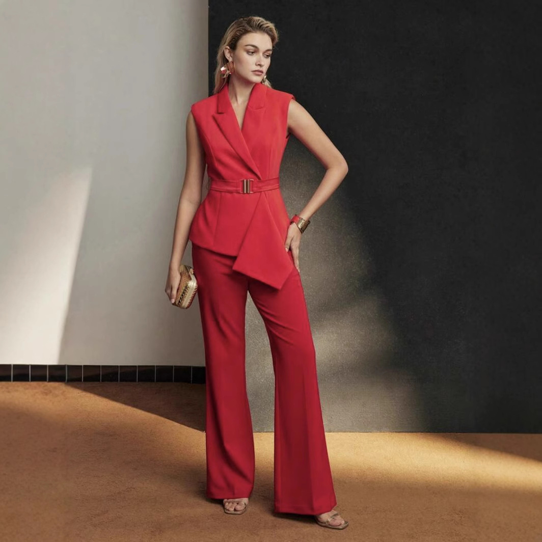 European and American Amazon Cross border Foreign Trade Women's Clothing Commuting Style Fashion Belt Collar Vest Pants Set Two Piece Set for Women