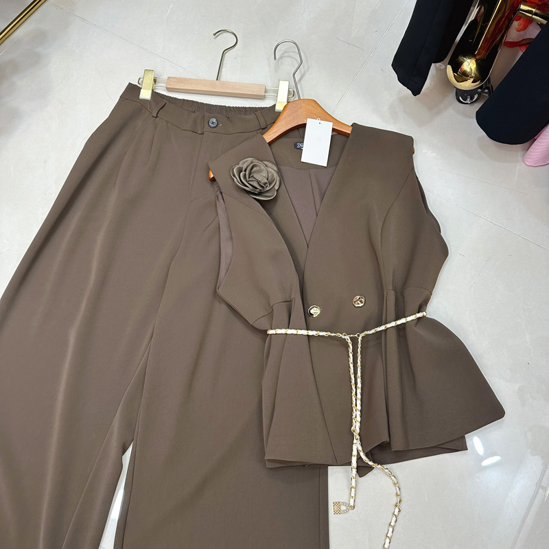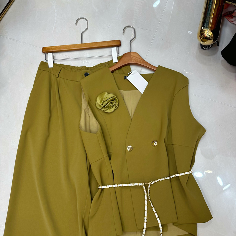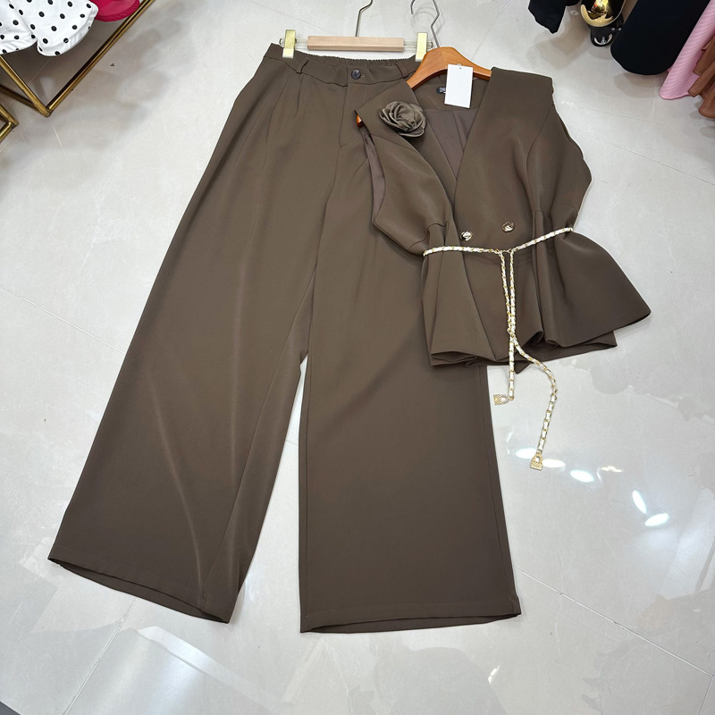 Thirteen line fashion V-neck sleeveless three-dimensional flower chain belt suit vest top pants set C2 # 2511
