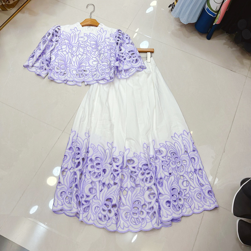 Thirteen line Australian yellow flower pattern short sleeved top+elegant slimming skirt set C1 # 1390