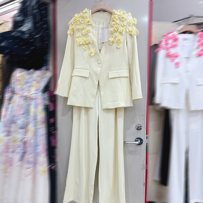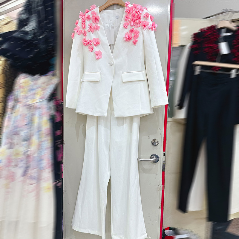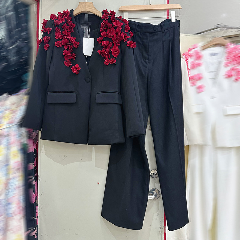 Thirteen line high-end fashion outfit with French handmade flower one button suit+straight leg pants 2-piece set A1 # 1026