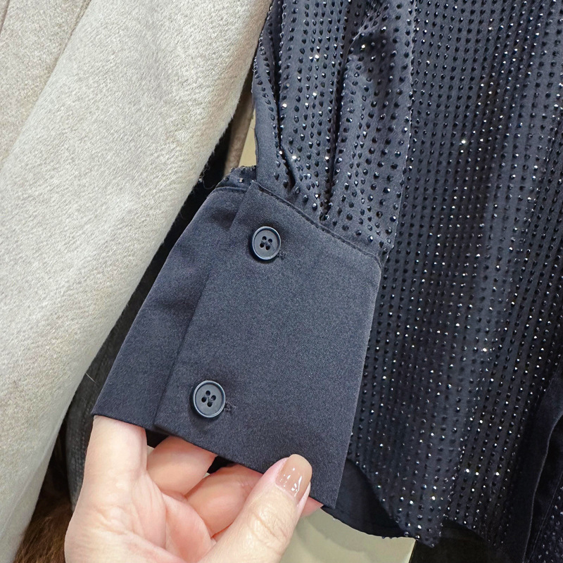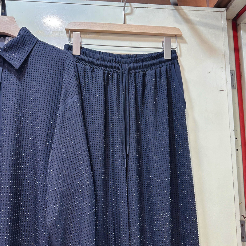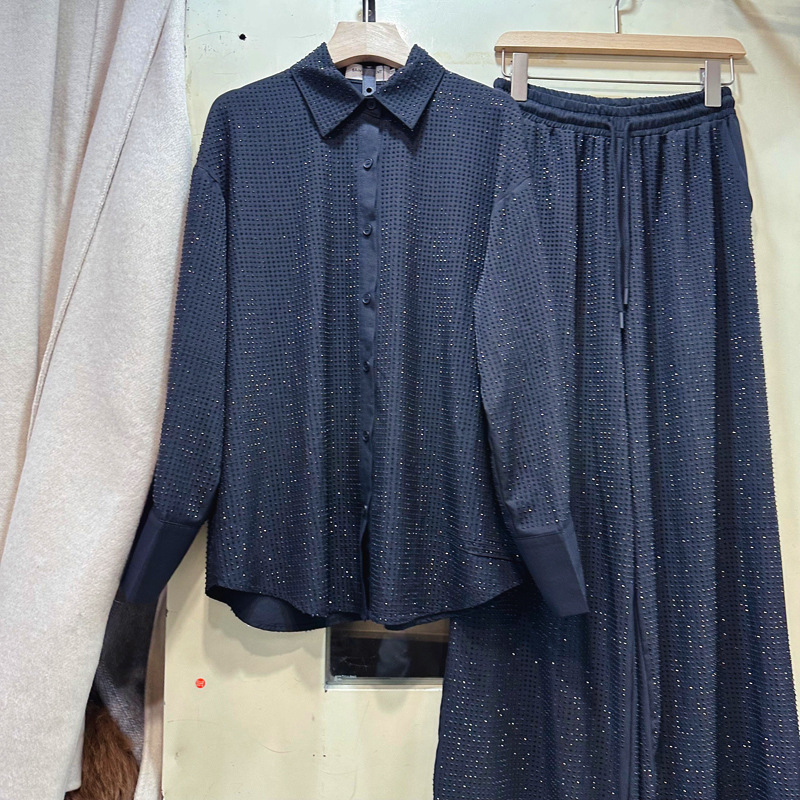 Thirteen Rows Winter New Fashionable Light Mature Heavy duty Full Diamond Shirt+Drawstring Straight Pants Set D1 # 5906