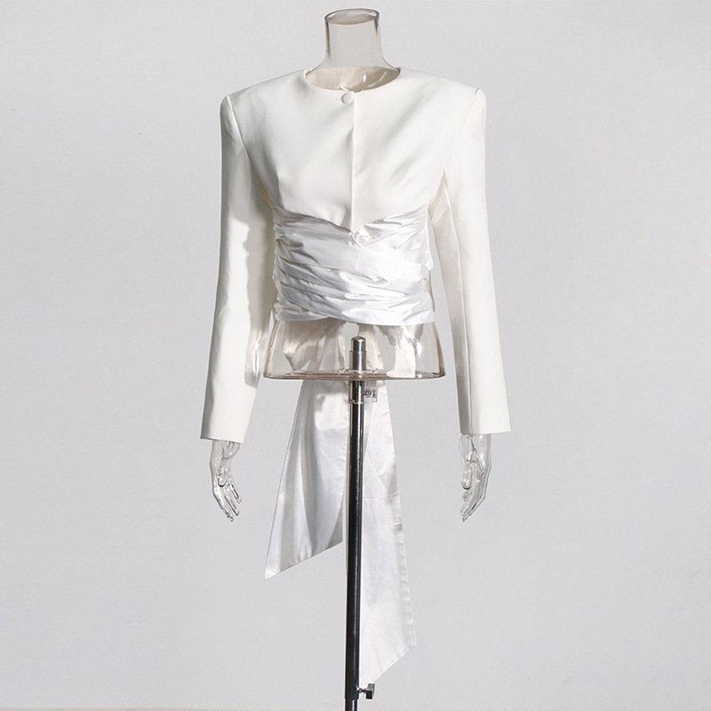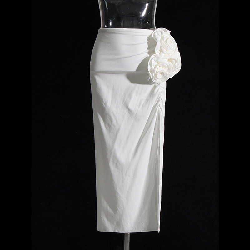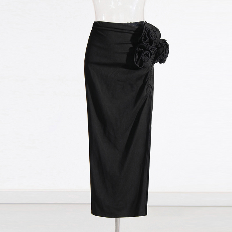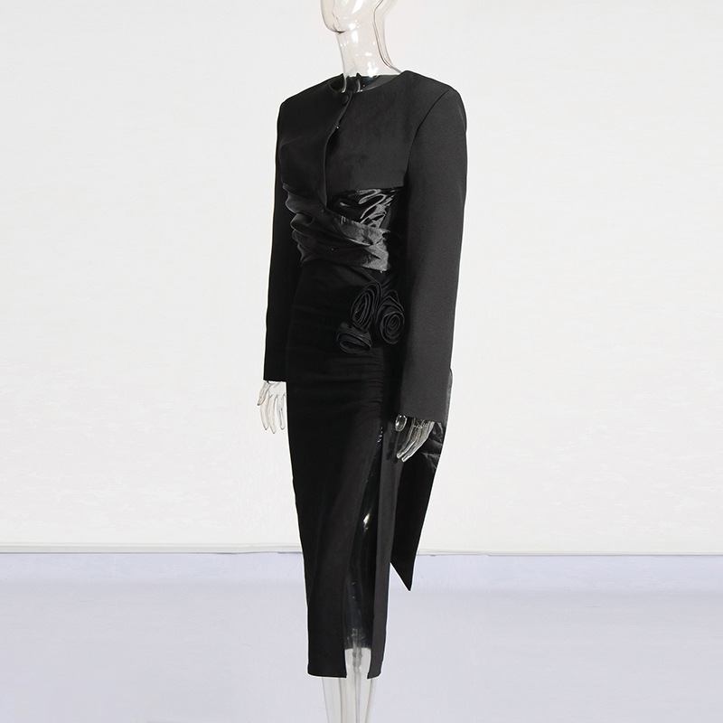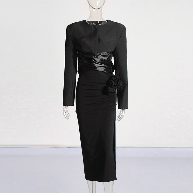 Fashion and high-end set 2025 new solid color round neck lace up top+sexy high waist split skirt for women