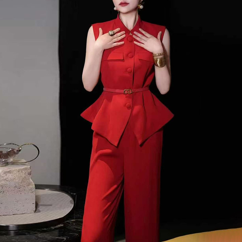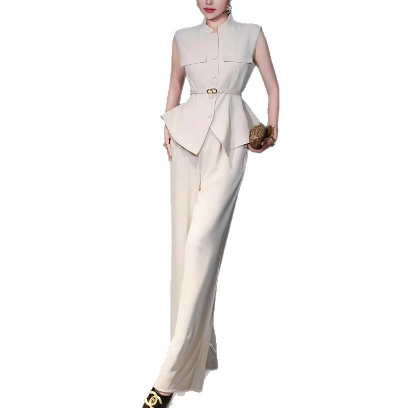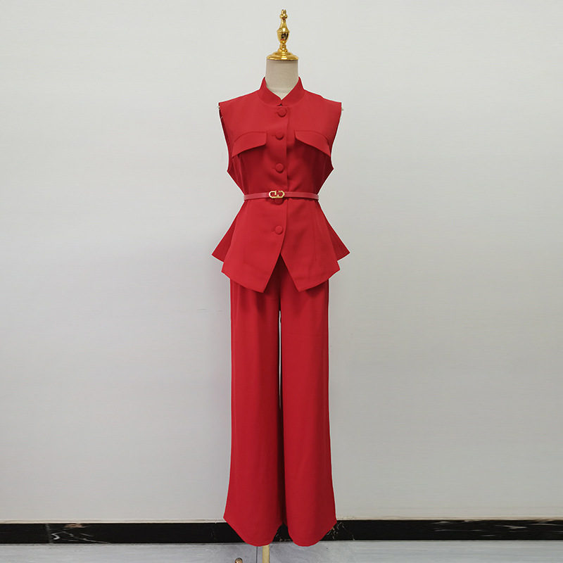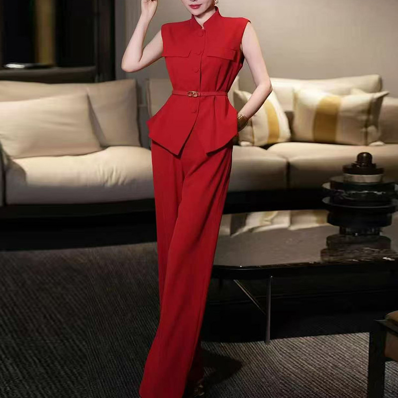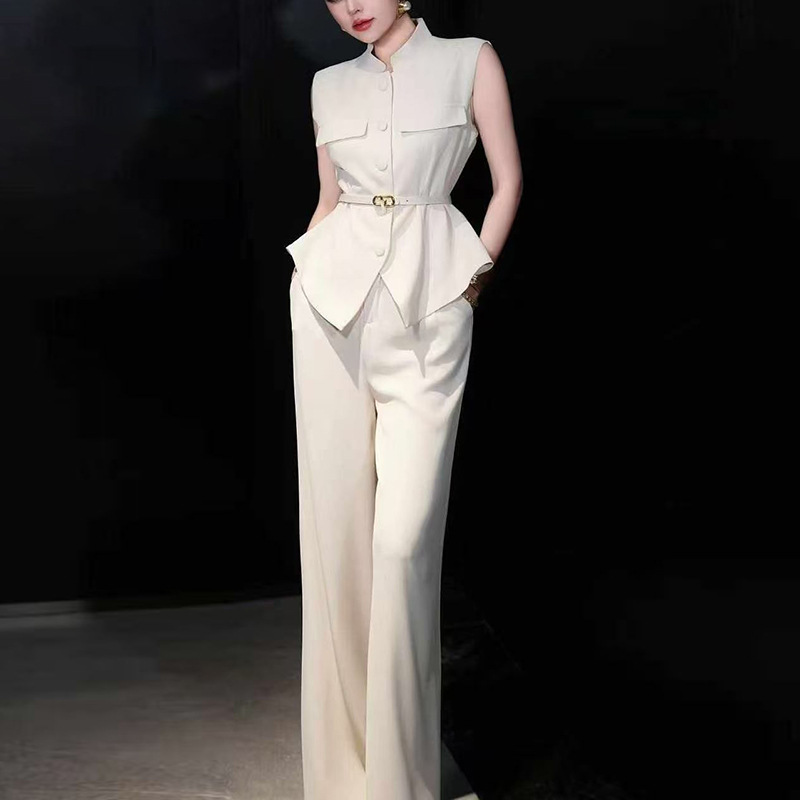 Fashion Commuter Set for Women 2025 New Single breasted Design Sleeveless Top+High Waist Straight Leg Pants Two Piece Set