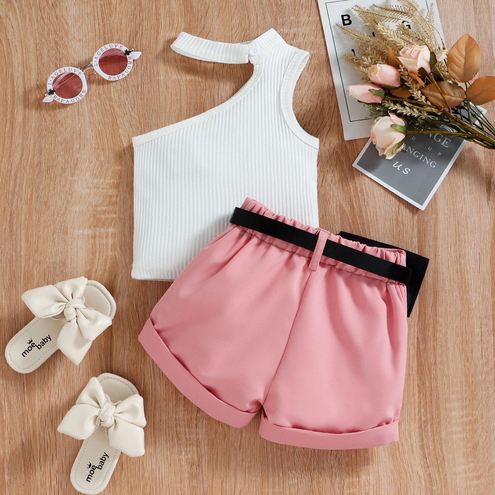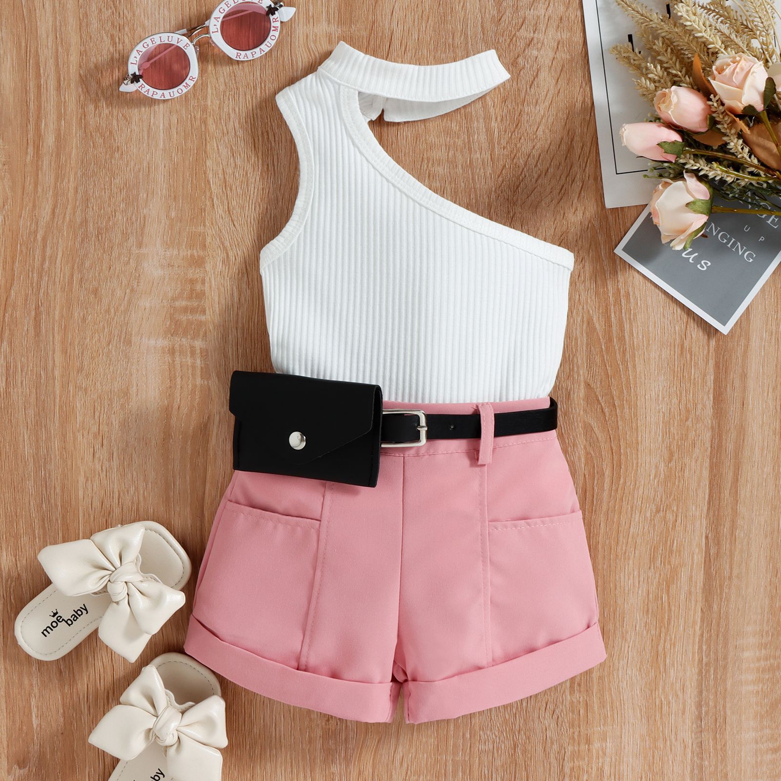 New Amazon Girls' Ins Shoulder Hanging Neck Pit Strip Top, Shorts, Waist Bag Set for European and American Foreign Trade