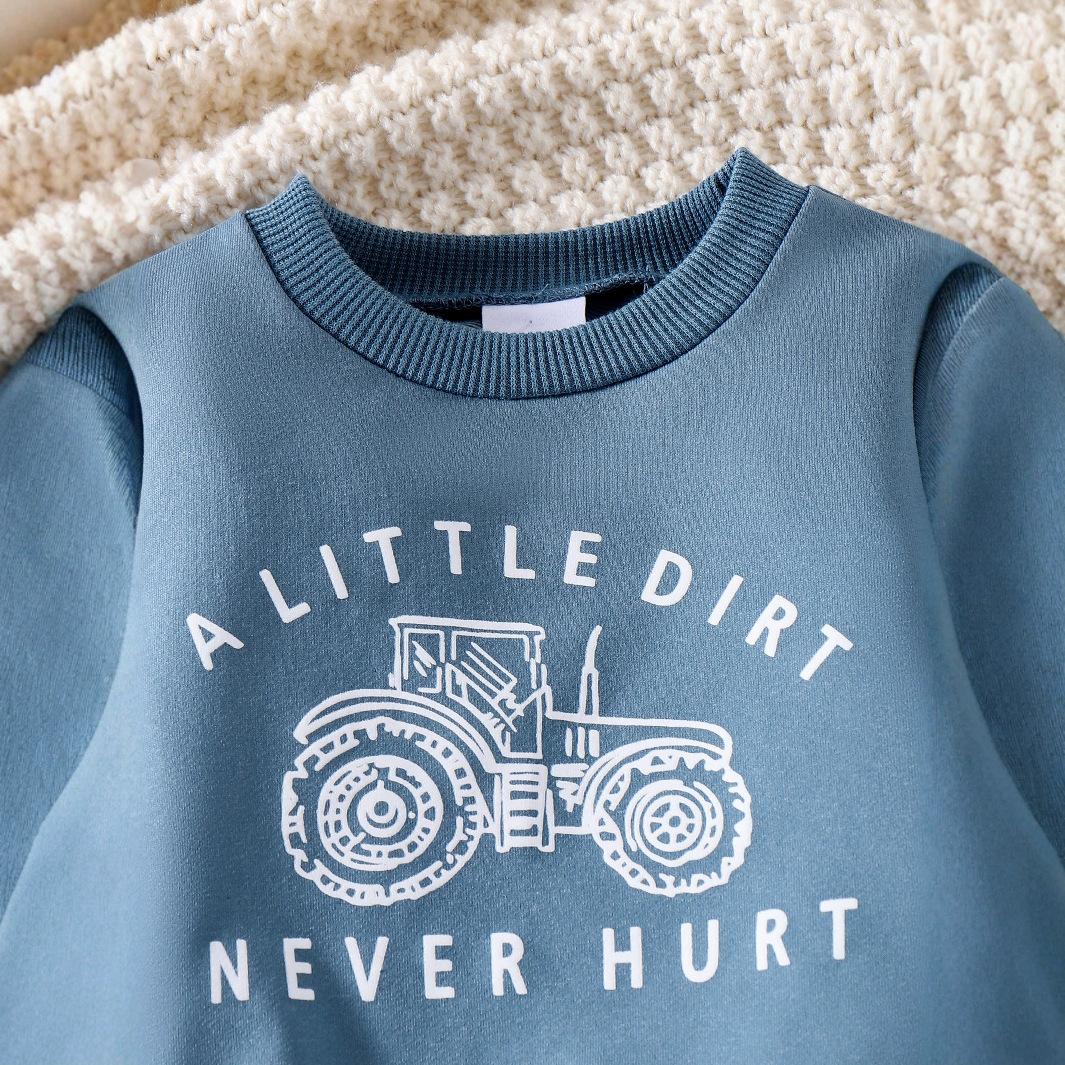 New children's clothing for foreign trade boys, casual and cute letter car printed long sleeved hoodie and pants two-piece set