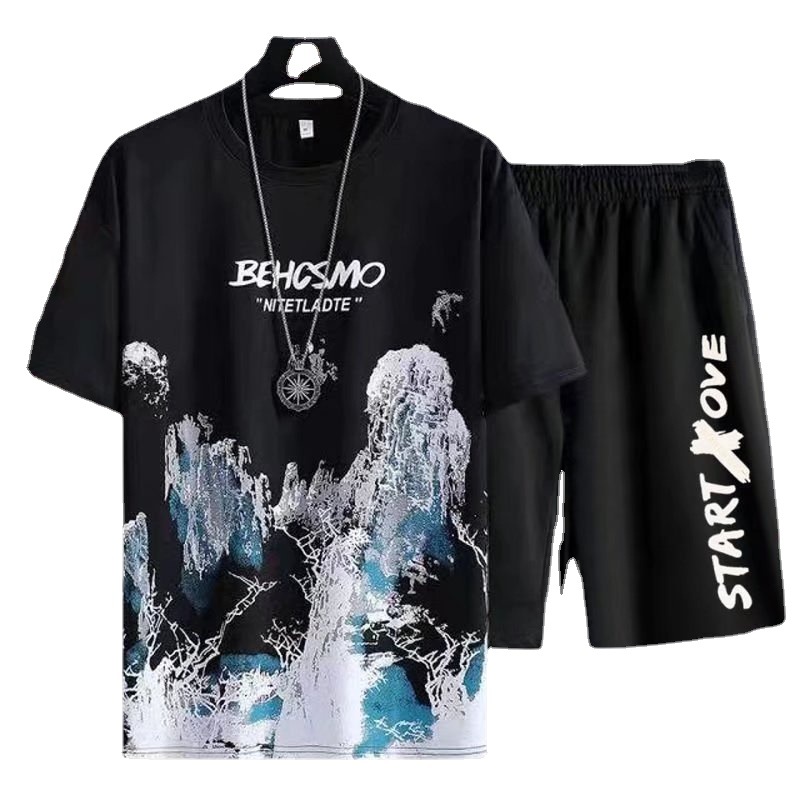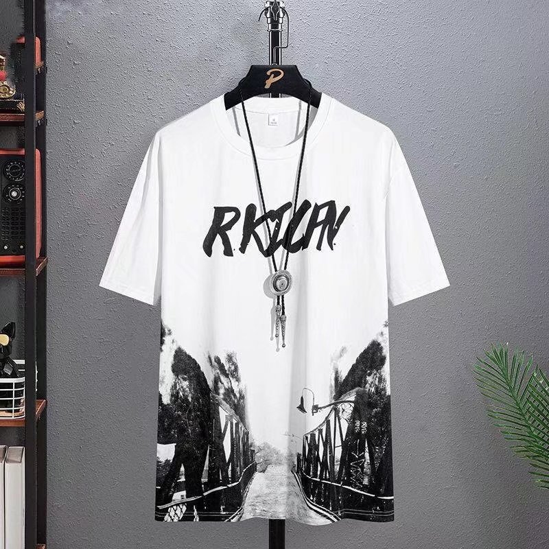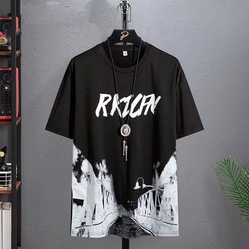Clothing for men in spring and summer, thin tie dye short sleeved, Chinese style landscape painting in stock, casual versatile wholesale, round neck
