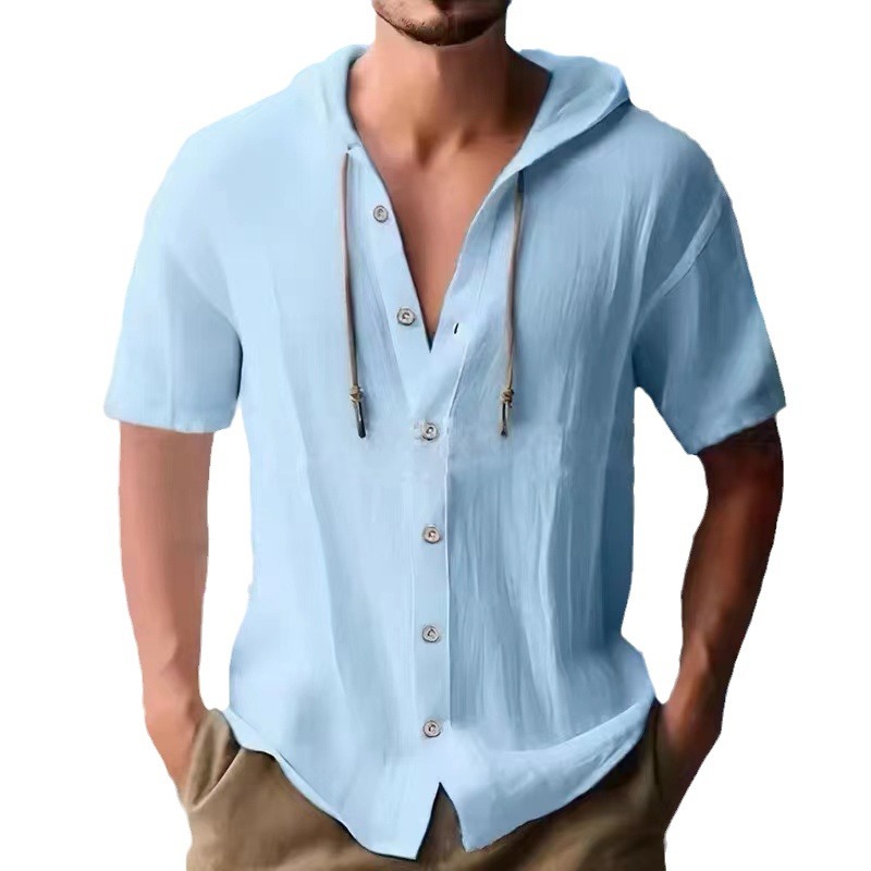 Cross border European and American men's sports and leisure hooded short sleeved shirt sweatshirt versatile loose beach suit simple and casual