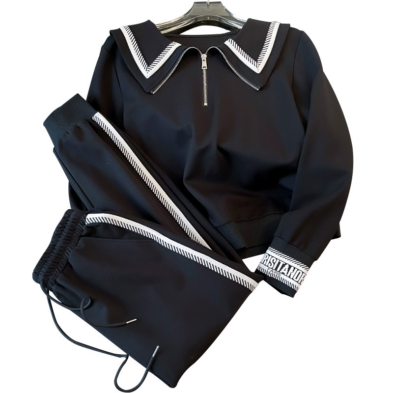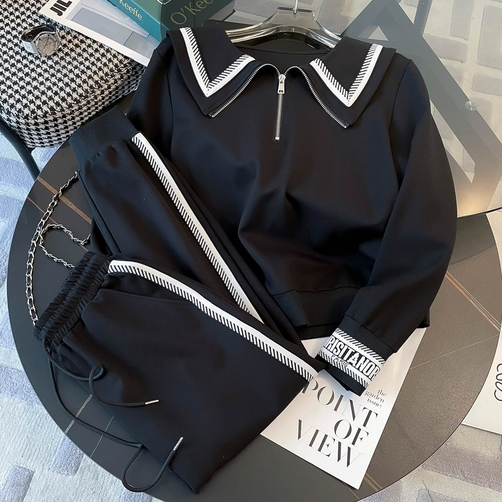Leisure Sports Set for Women 2024 Autumn/Winter New Fashionable and Stylish Style, Reduced Age Zipper Doll Collar Two Piece Set, Trendy Ins