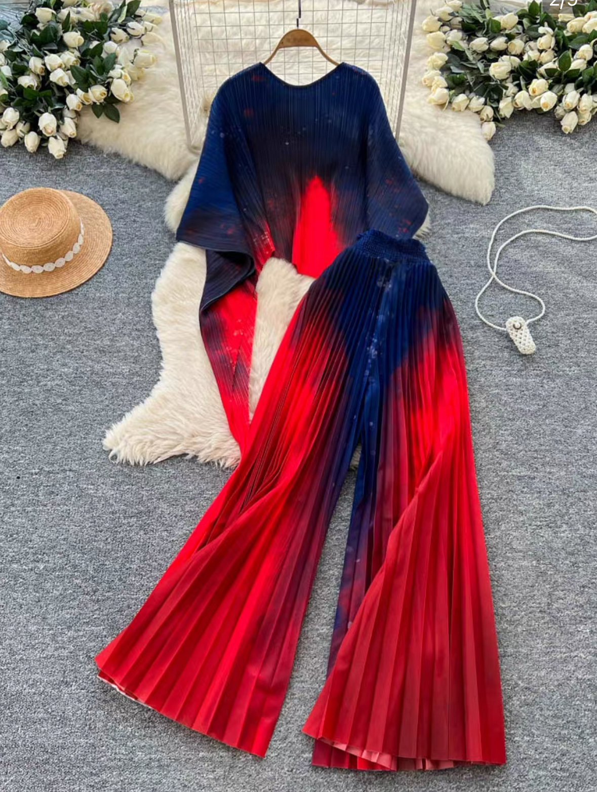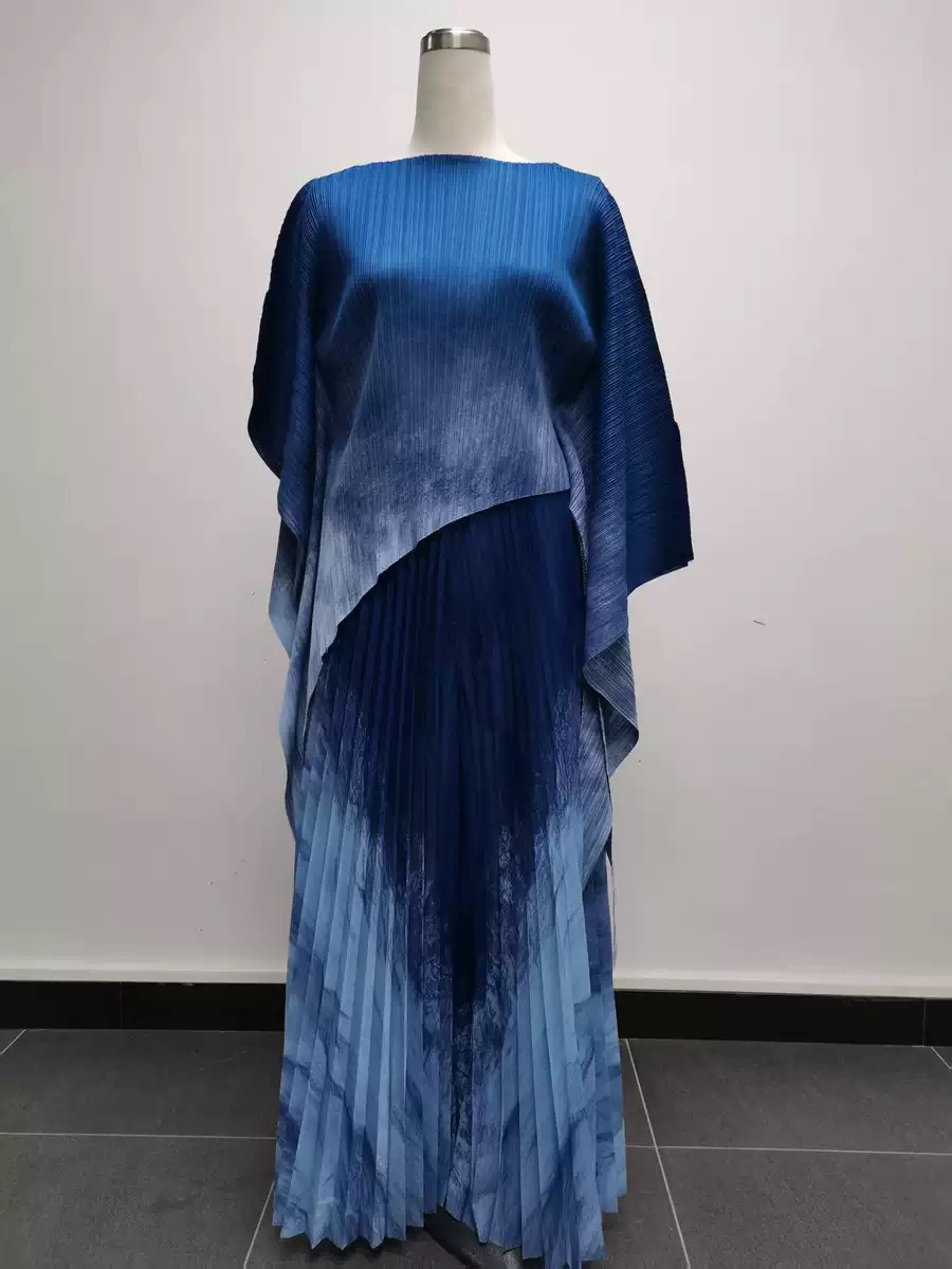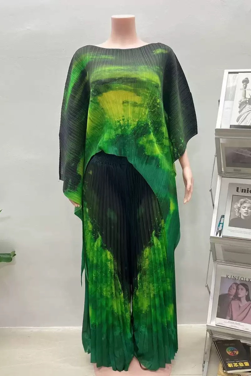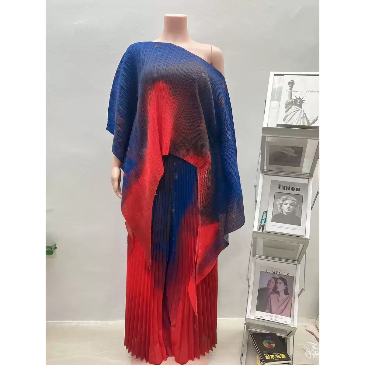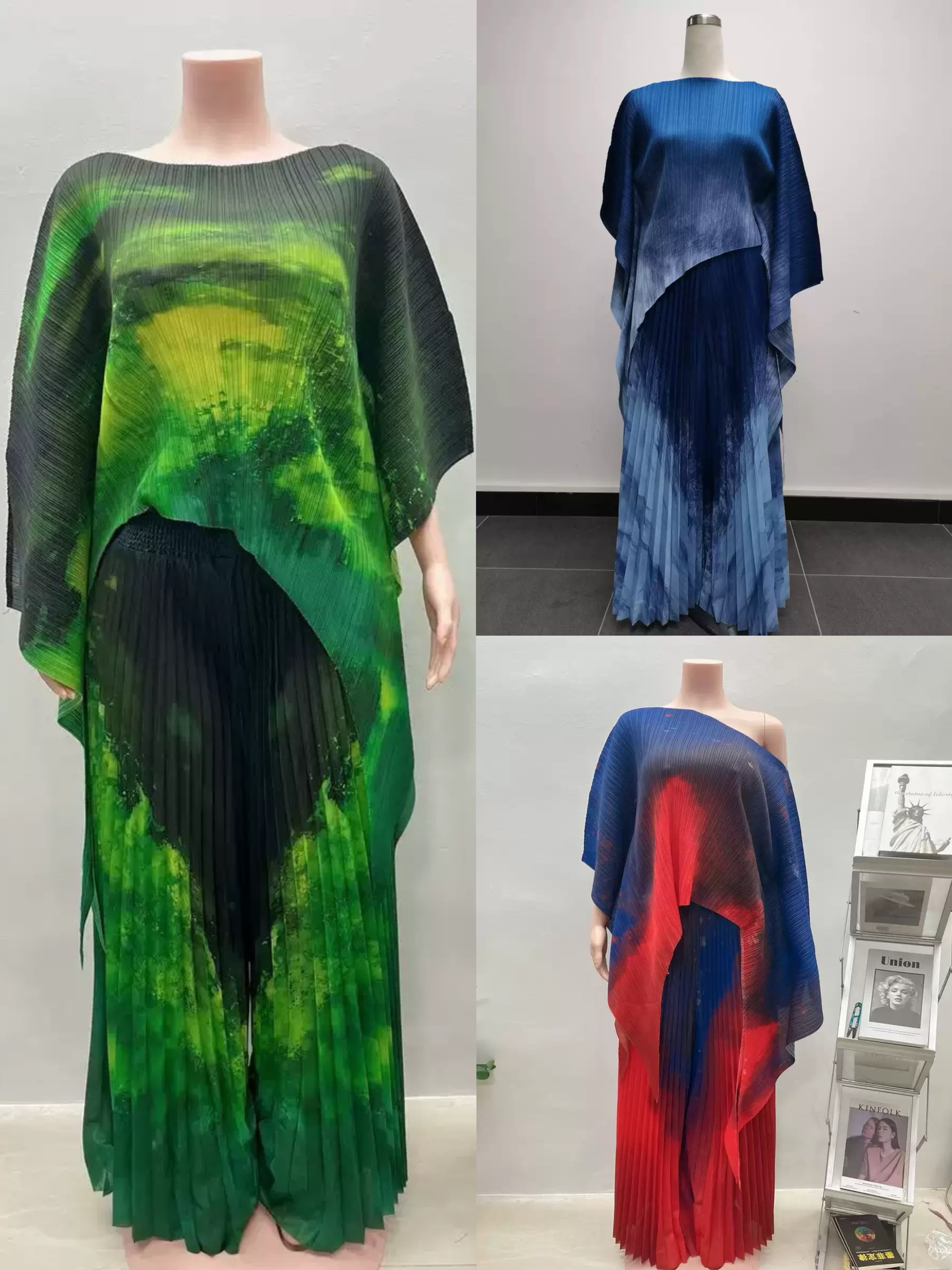 Cross border African three bedroom plus size women's printed fashion casual pleated suit European and American irregular top pleated pants