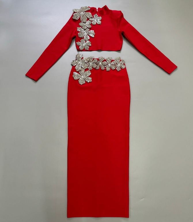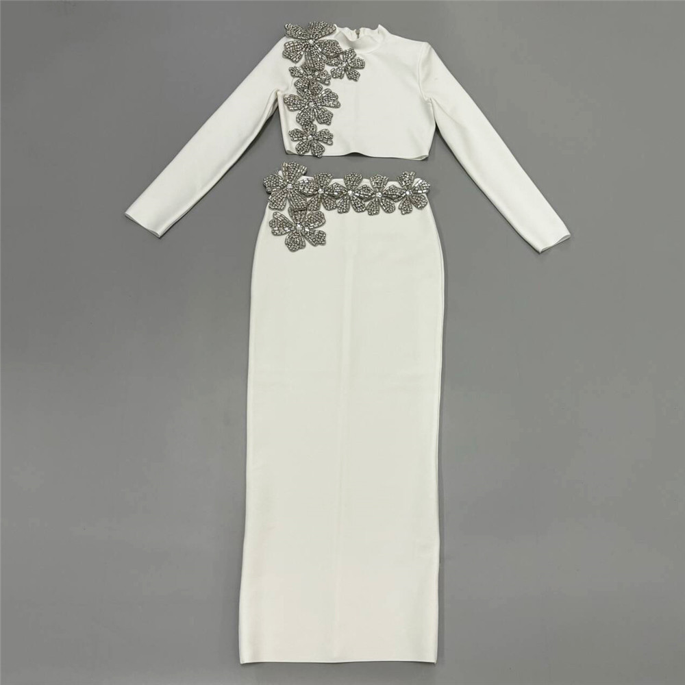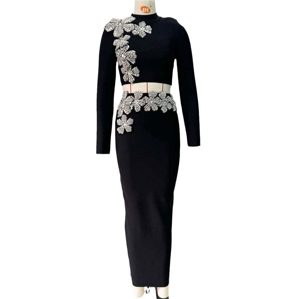 2024 New Bandage Skirt Set Long Skirt Two Piece Set Party Dress Autumn/Winter High Waist Heavy Industry Women's Fashion European and American