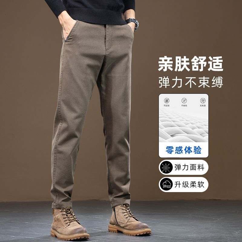 Straight leg pants, elastic loose men's pants, spring and autumn new styles, casual men's hot items, business slim fit men's light luxury