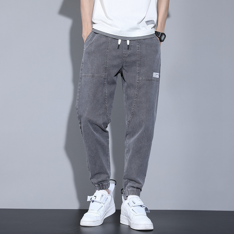 Jeans men's leg binding Korean version 2025 spring and summer trendy brand loose fitting youth versatile casual harem long pants