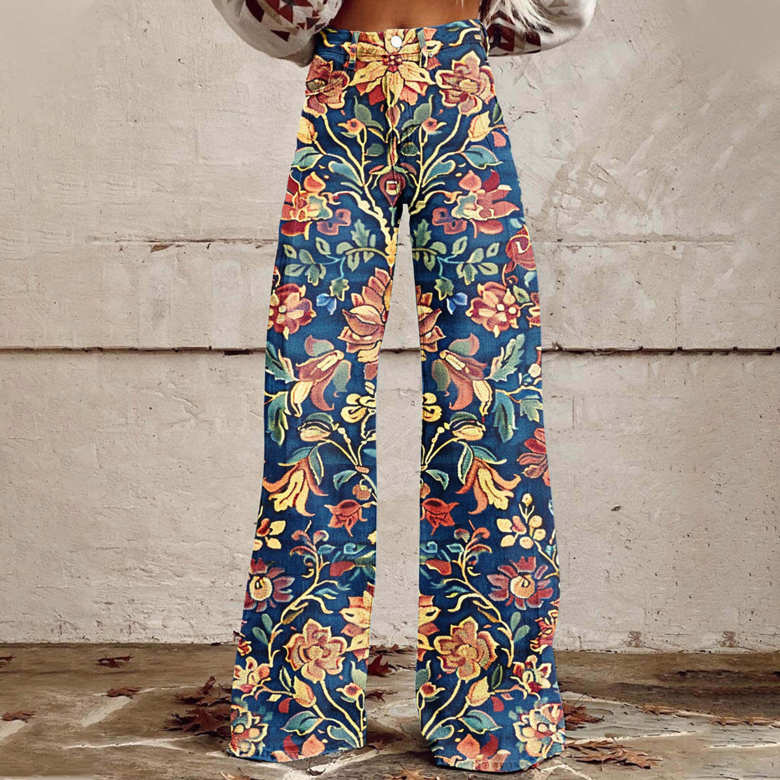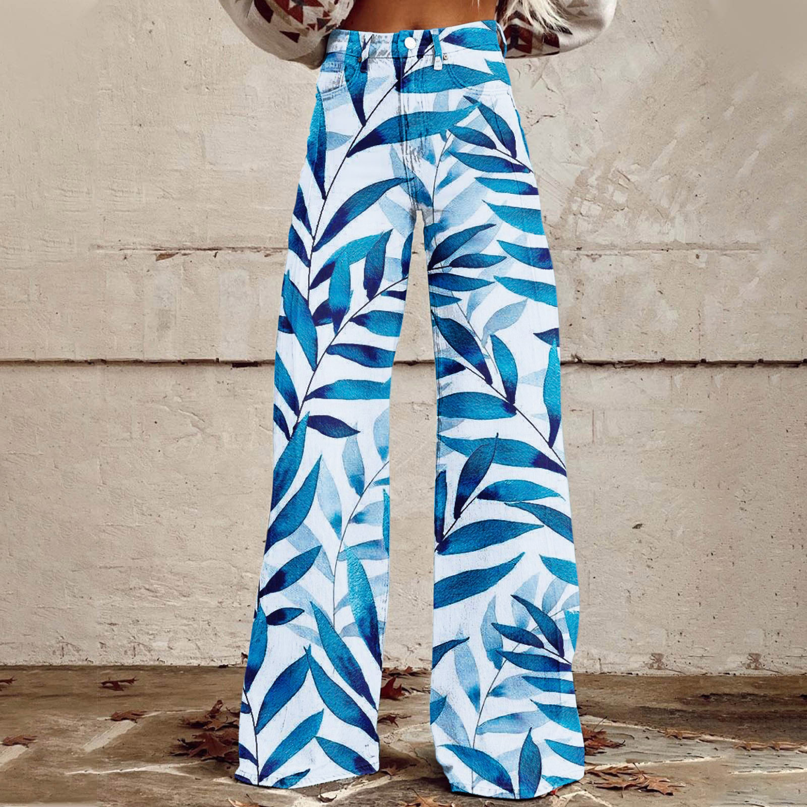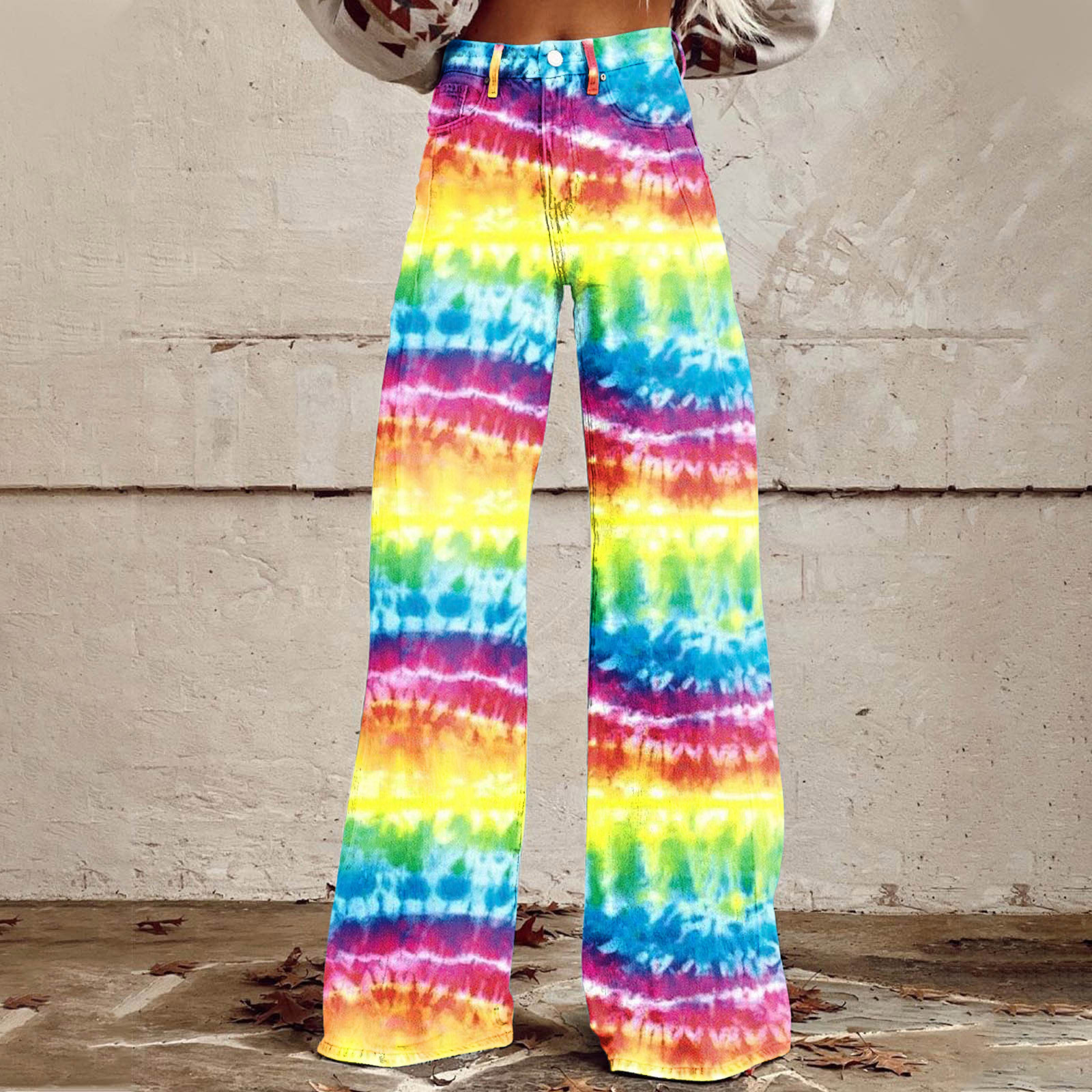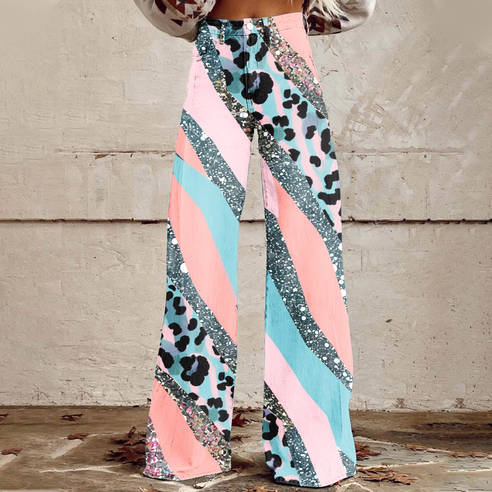 Autumn new gradient wide leg men's and women's sports pants, fashionable imitation denim 3D printed cross-border popular casual pants