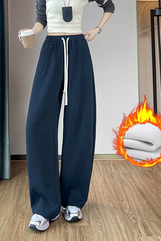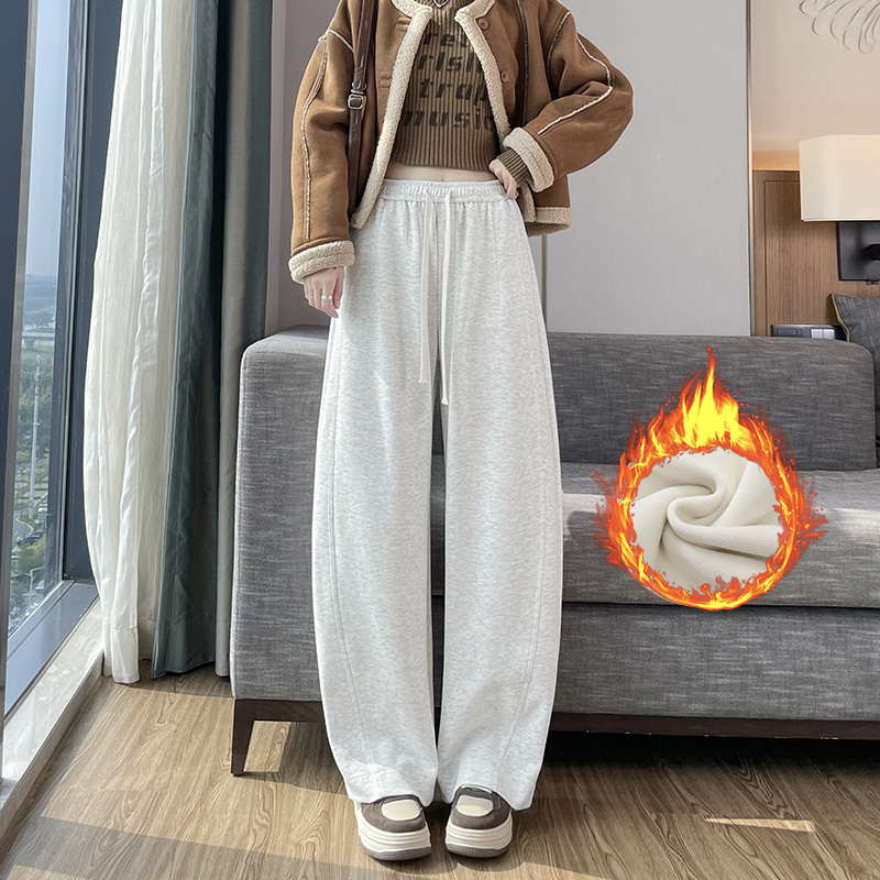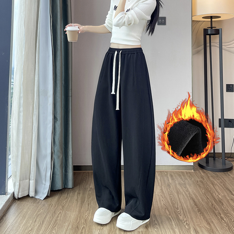 Autumn and Winter New Velvet Thick Pants, Children's 2025 New Collection, Simple and Elegant, Casual and Versatile, Sports Wide Leg Pants