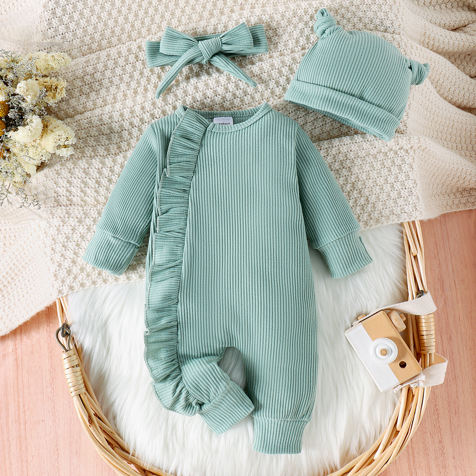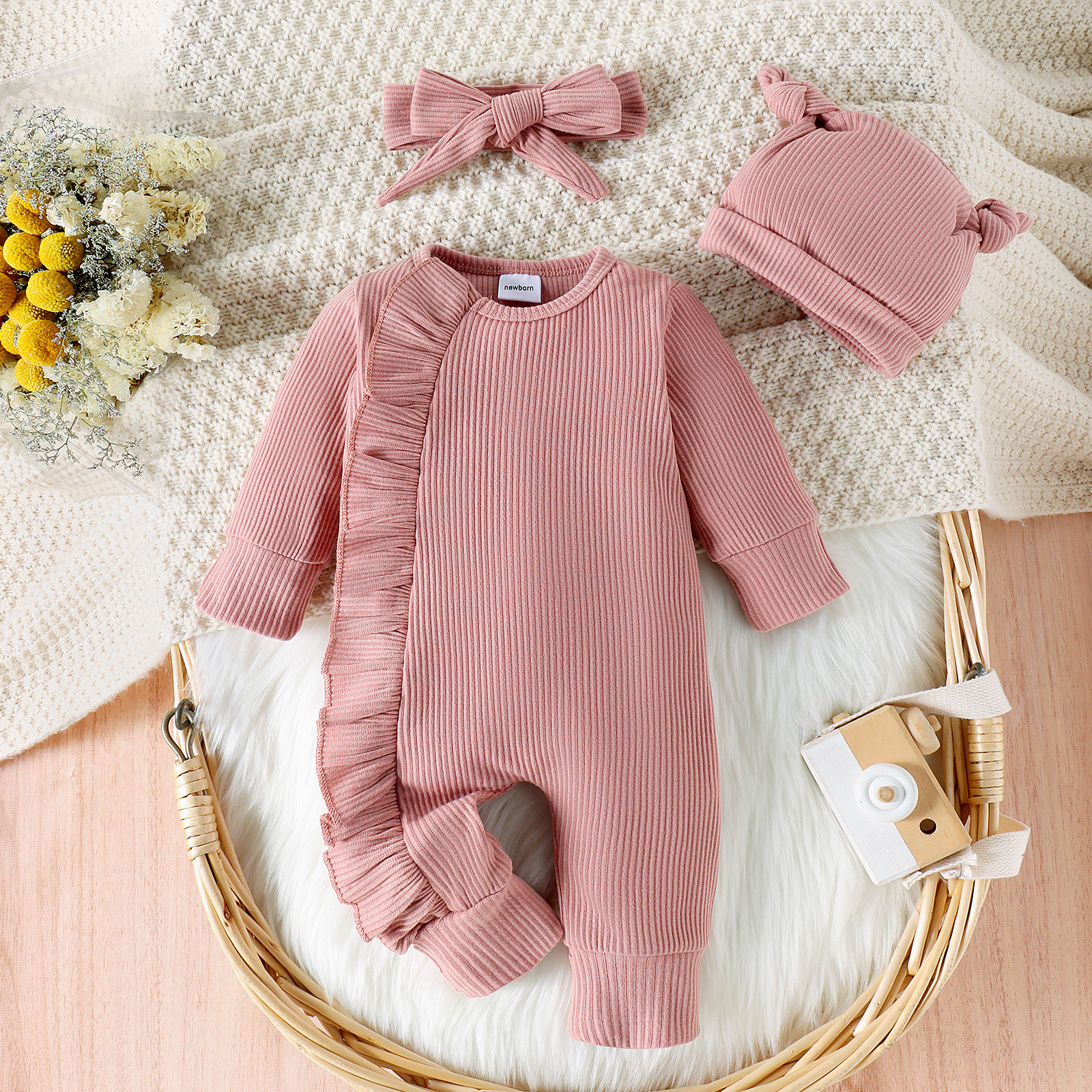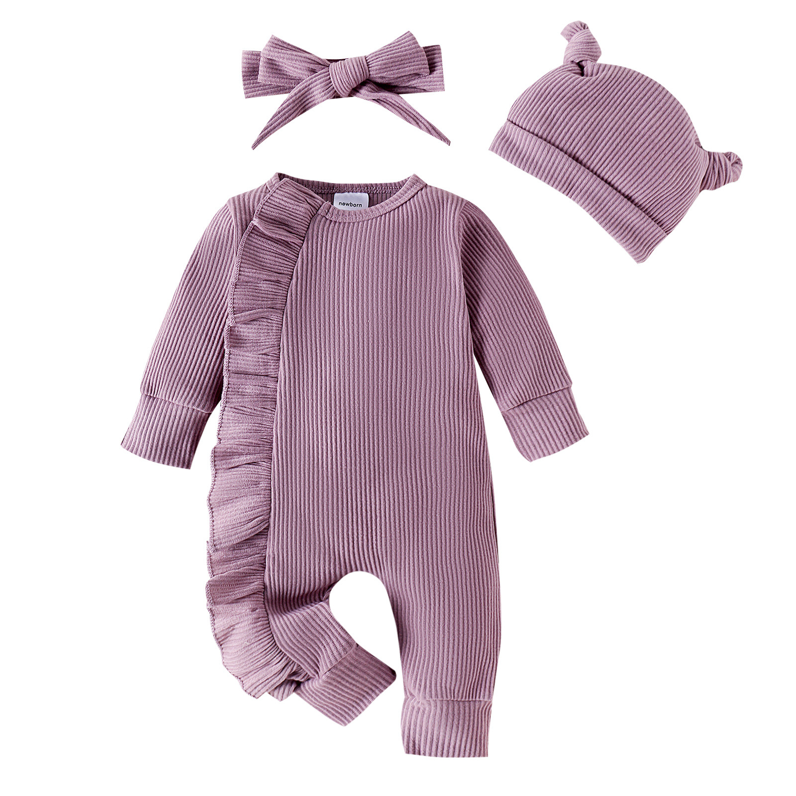 Cross border Amazon INS boys and girls baby solid color long sleeved jumpsuit hat headscarf
