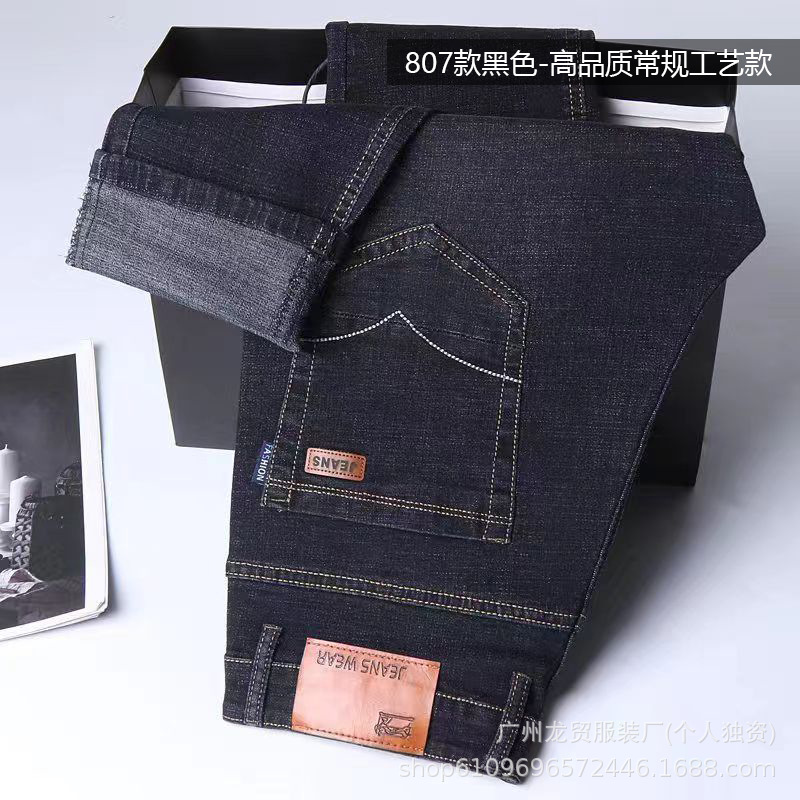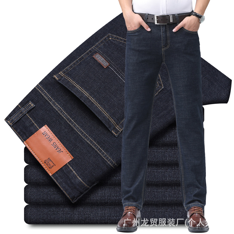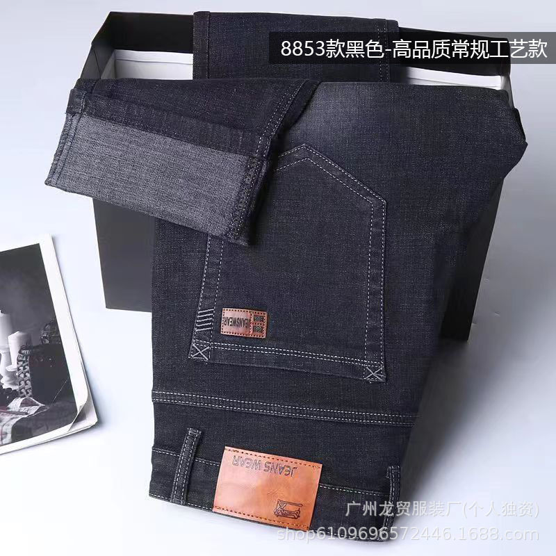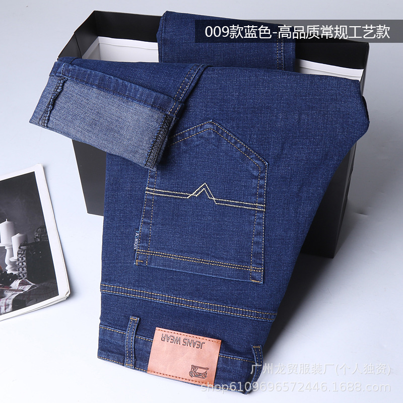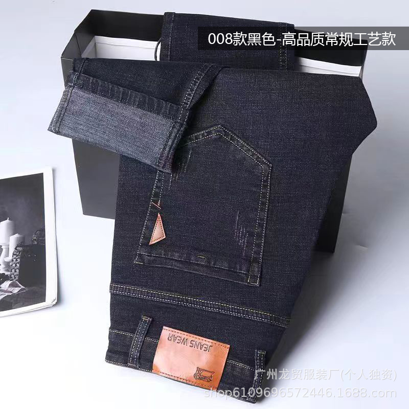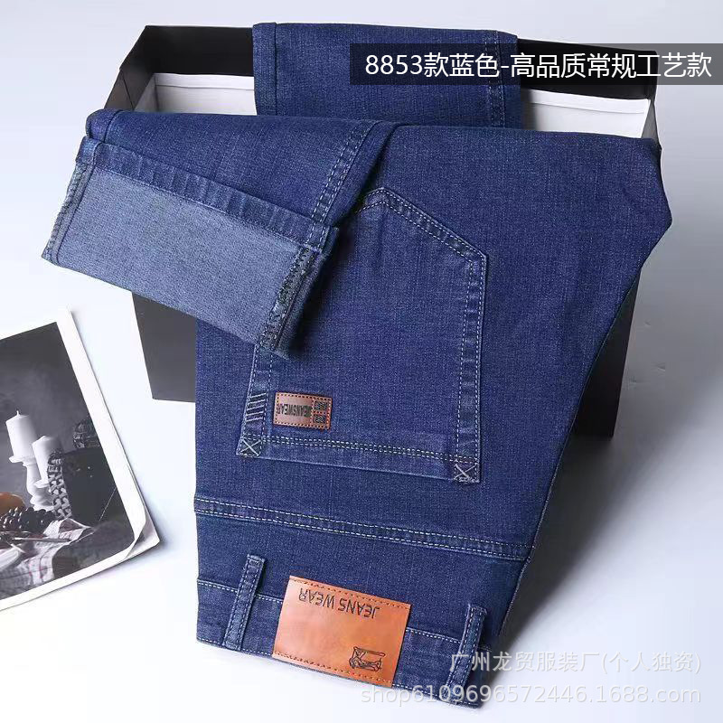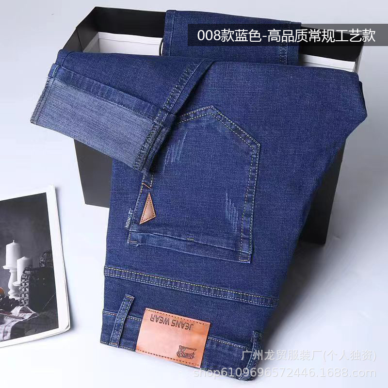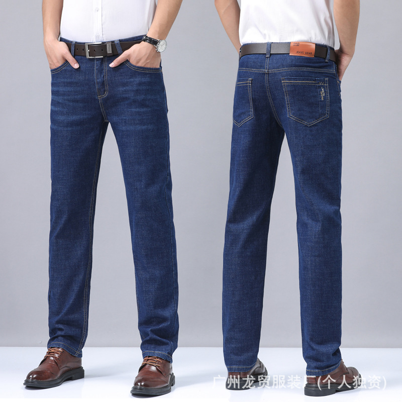 Men's Longmao trendy jeans, wear-resistant, high-quality, business elastic, casual straight leg high waist youth versatile pants