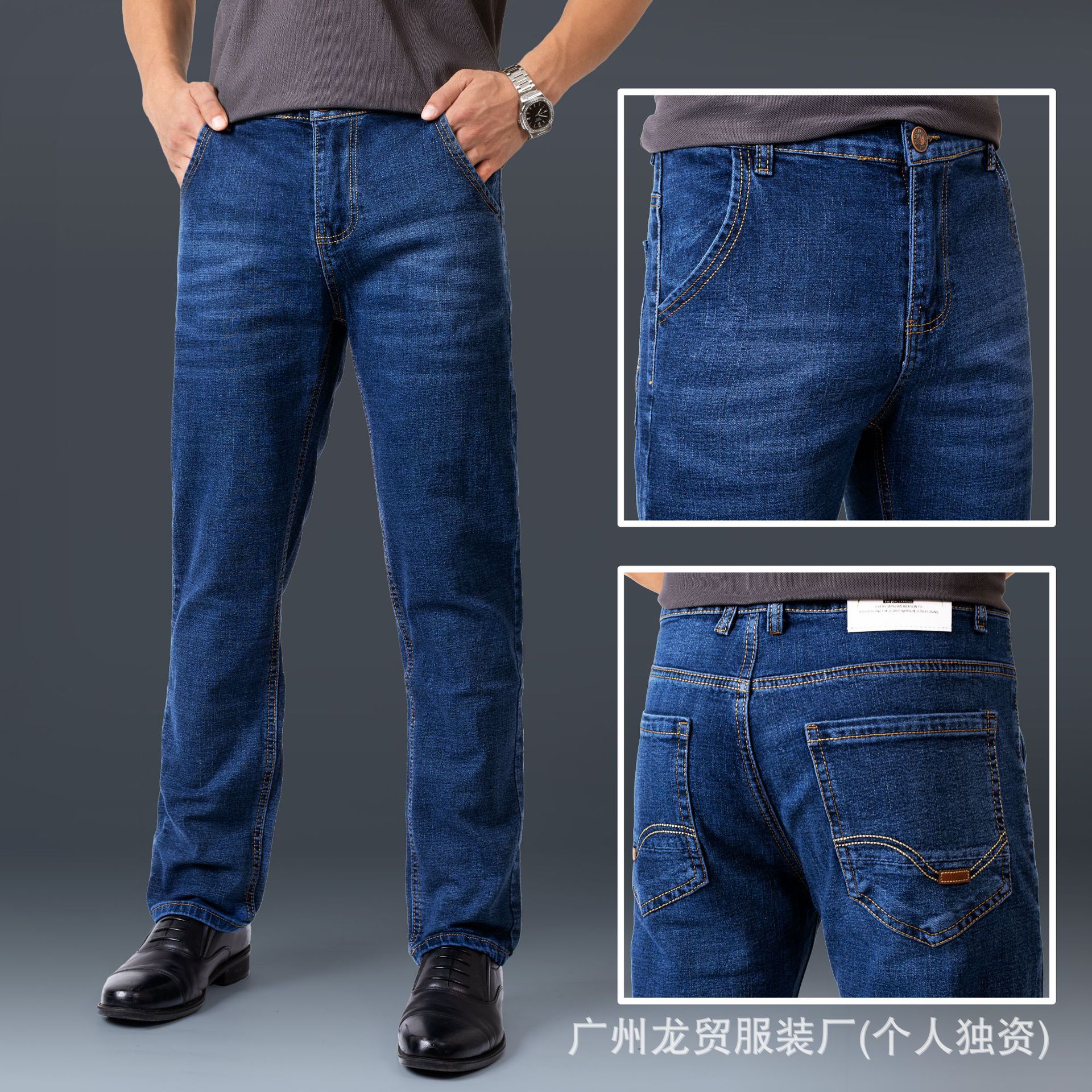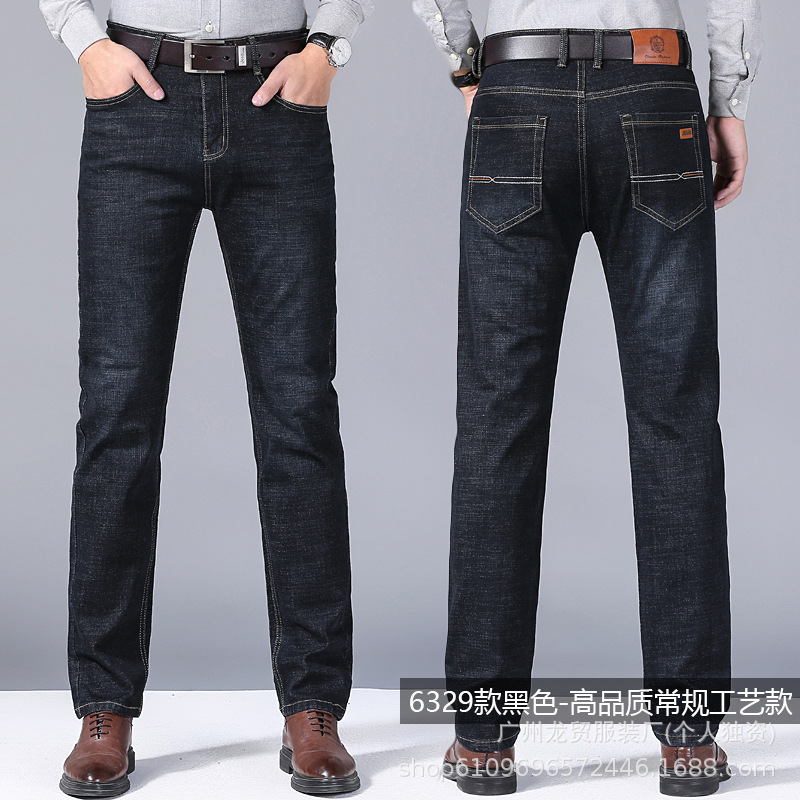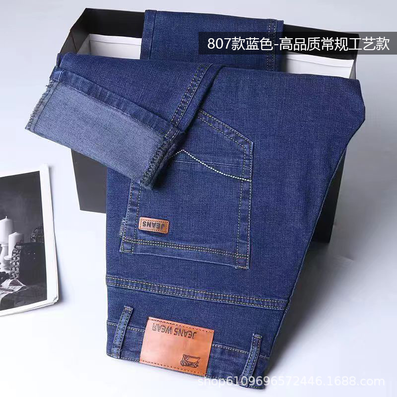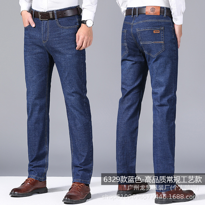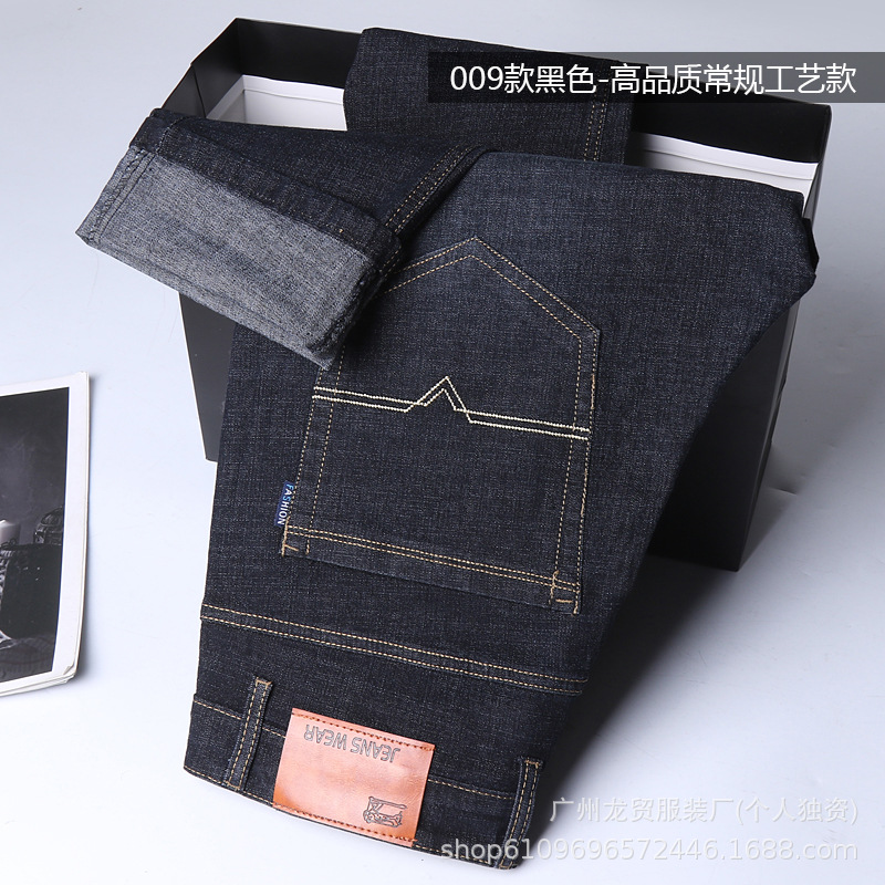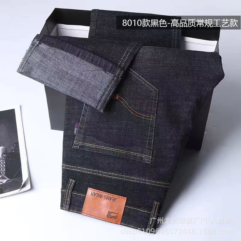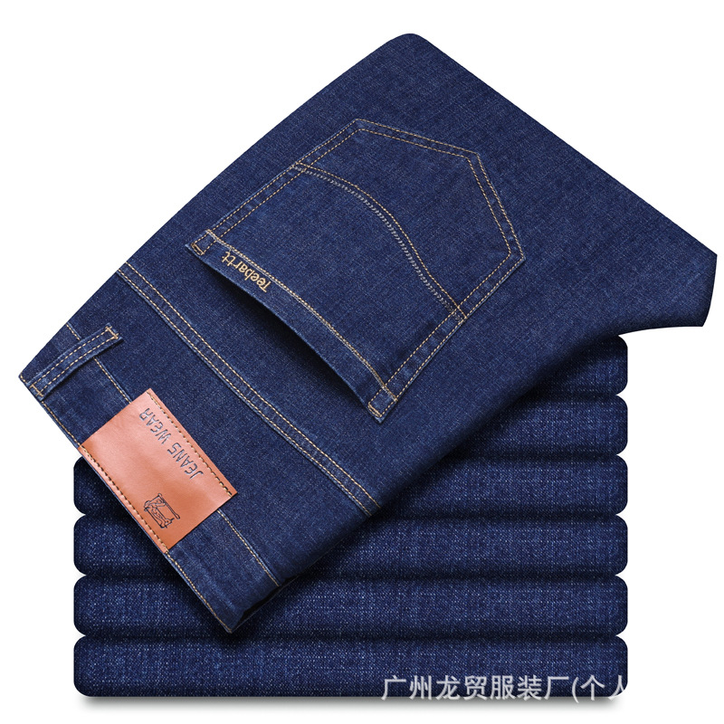 Men's Longmao trendy jeans, wear-resistant, high-quality, business elastic, casual straight leg high waist youth versatile pants