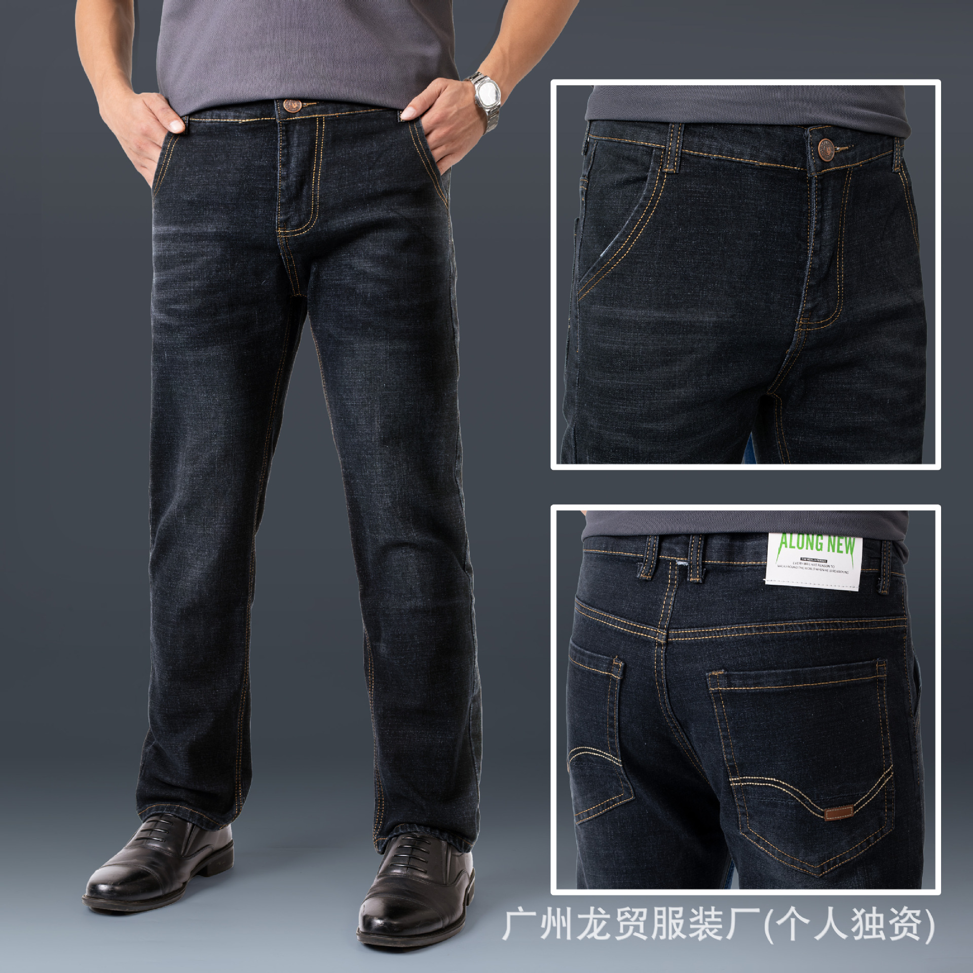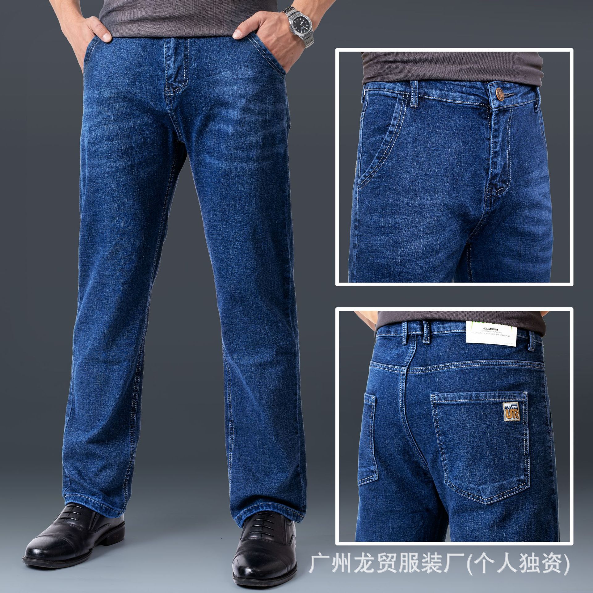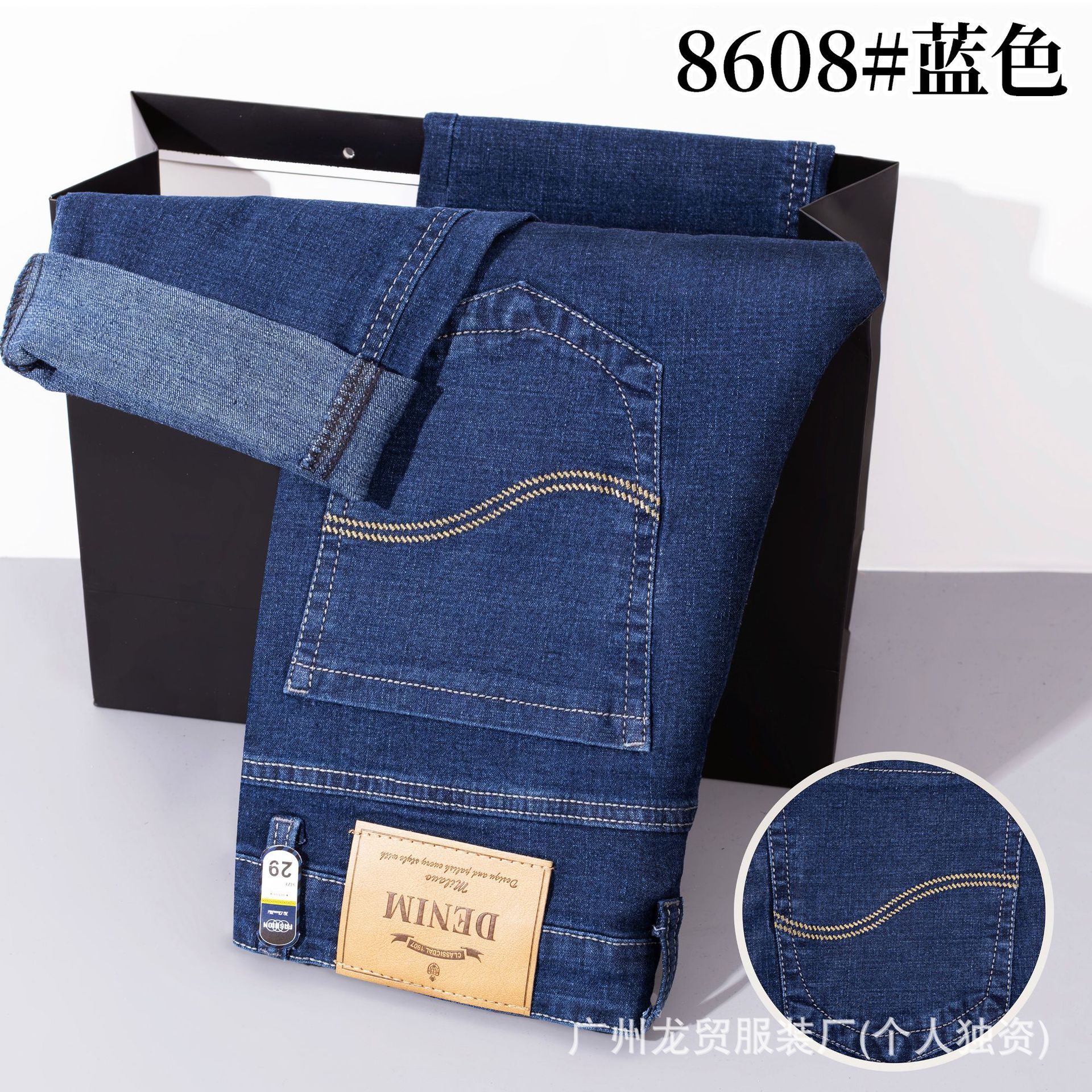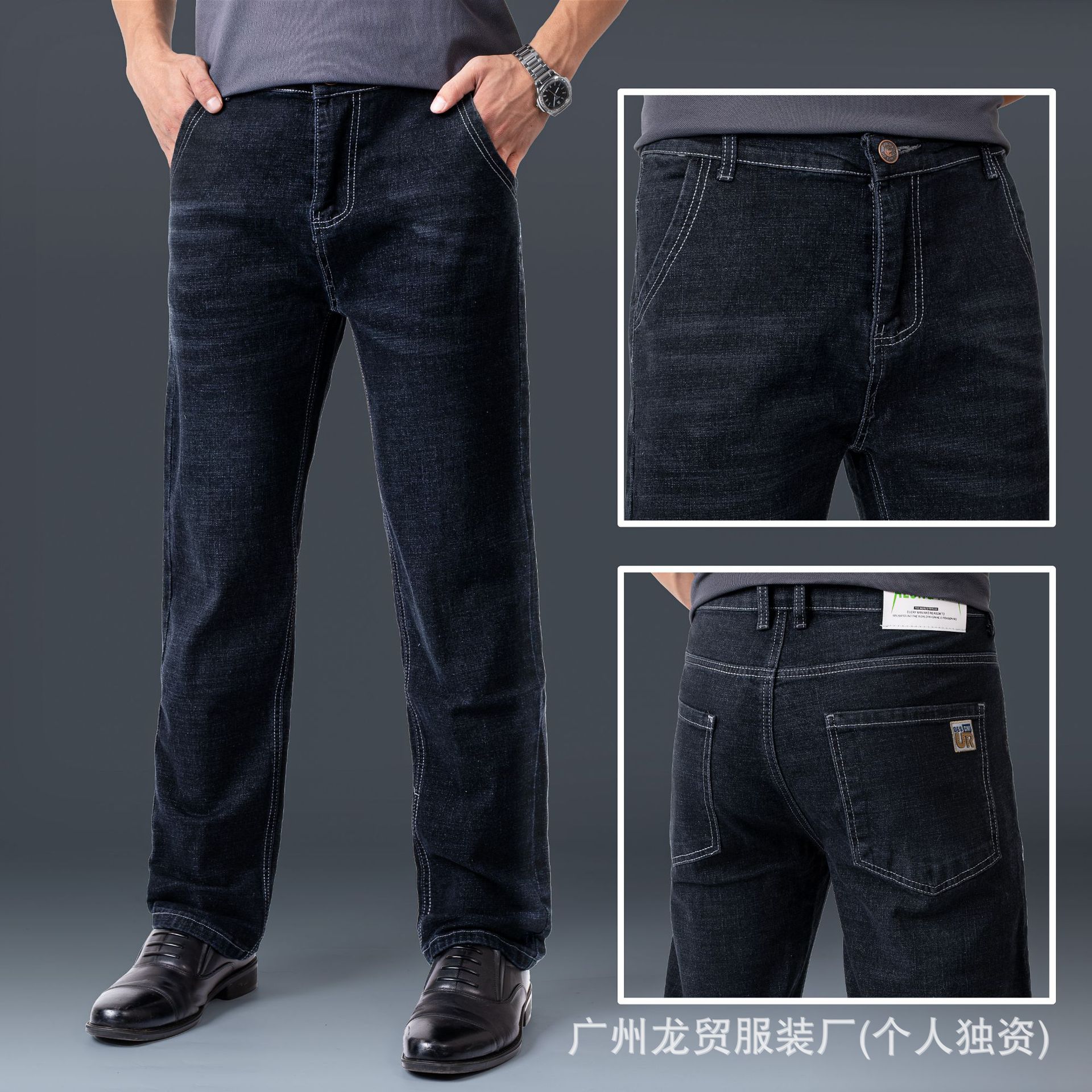 Men's Longmao trendy jeans, wear-resistant, high-quality, business elastic, casual straight leg high waist youth versatile pants
